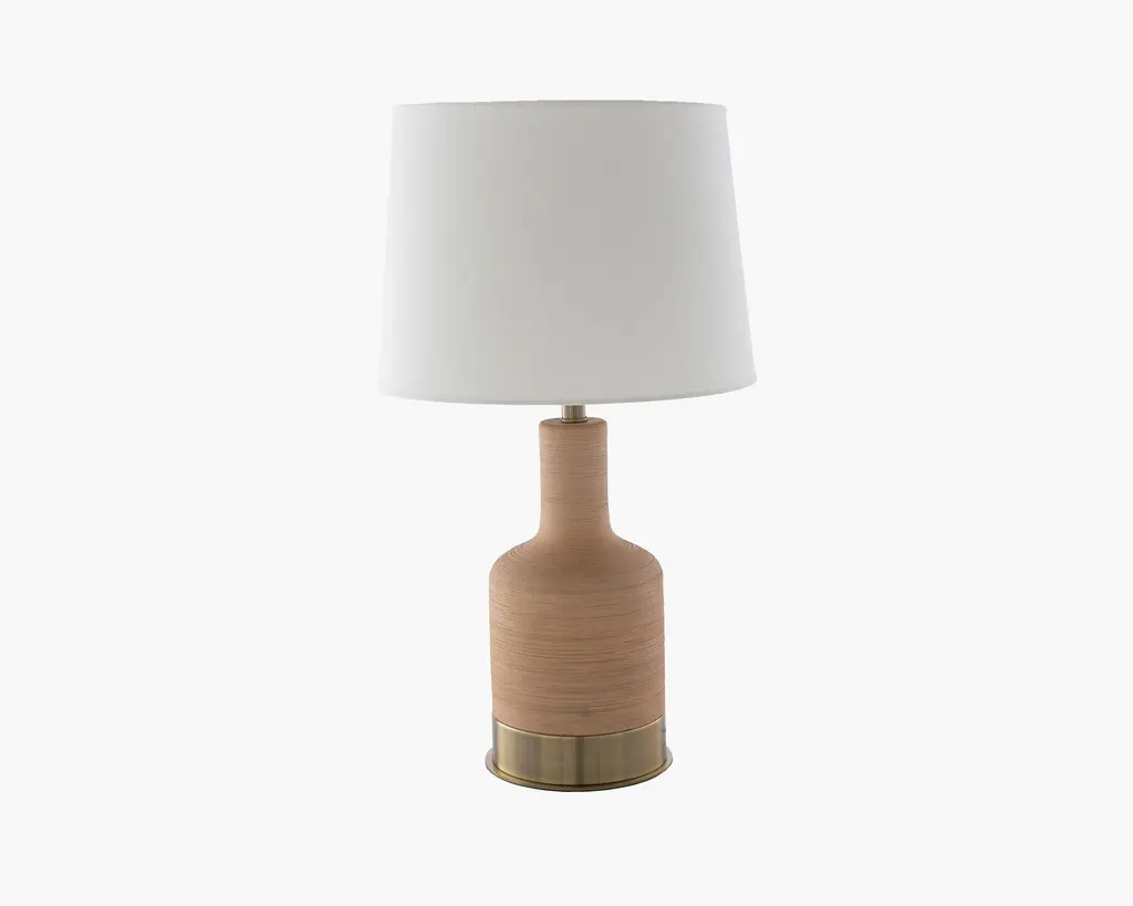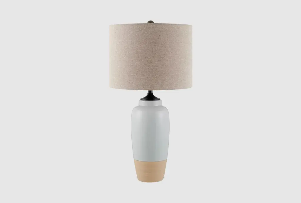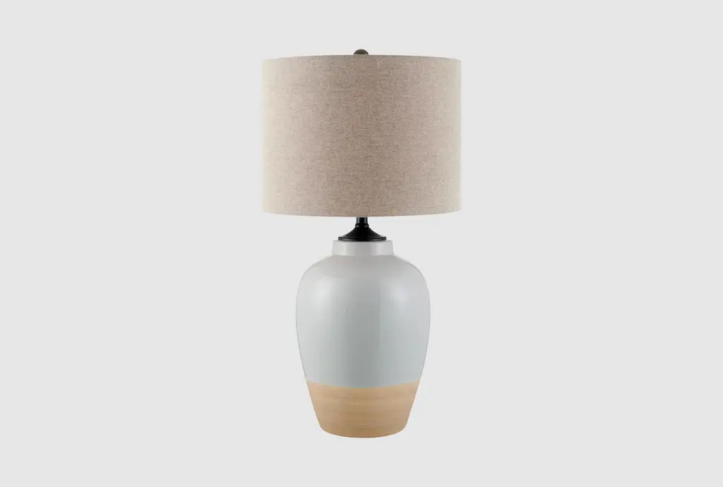 The Rama Table Lamp, with its gorgeous ceramic base and jute shade, is a sleek, modern way to keep out the dark.