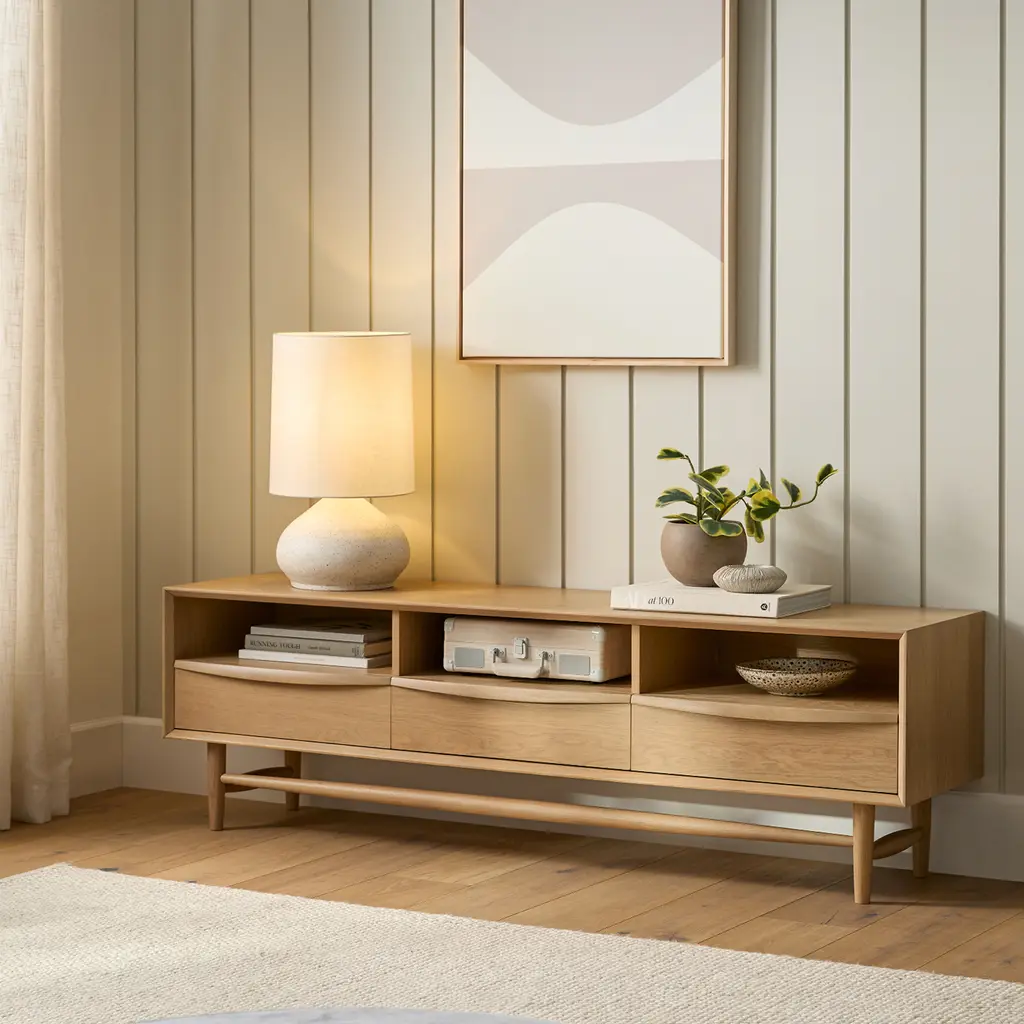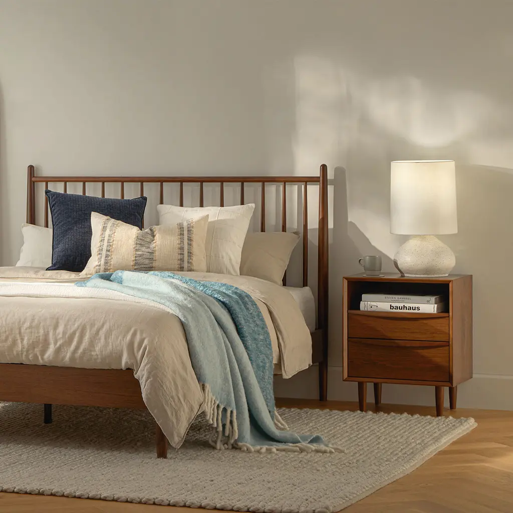 The Rama Table Lamp, with its gorgeous ceramic base and jute shade, is a sleek, modern way to keep out the dark.