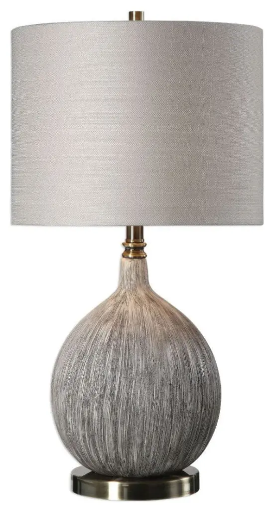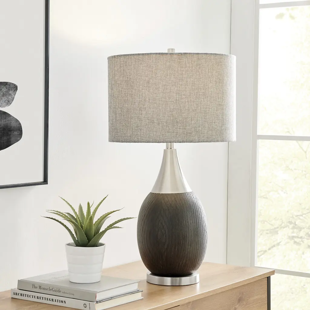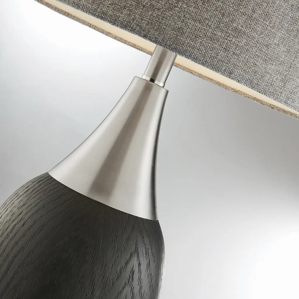 Table Lamp, D.walnut Finished/grey Fabric Shade, E27 A 100w