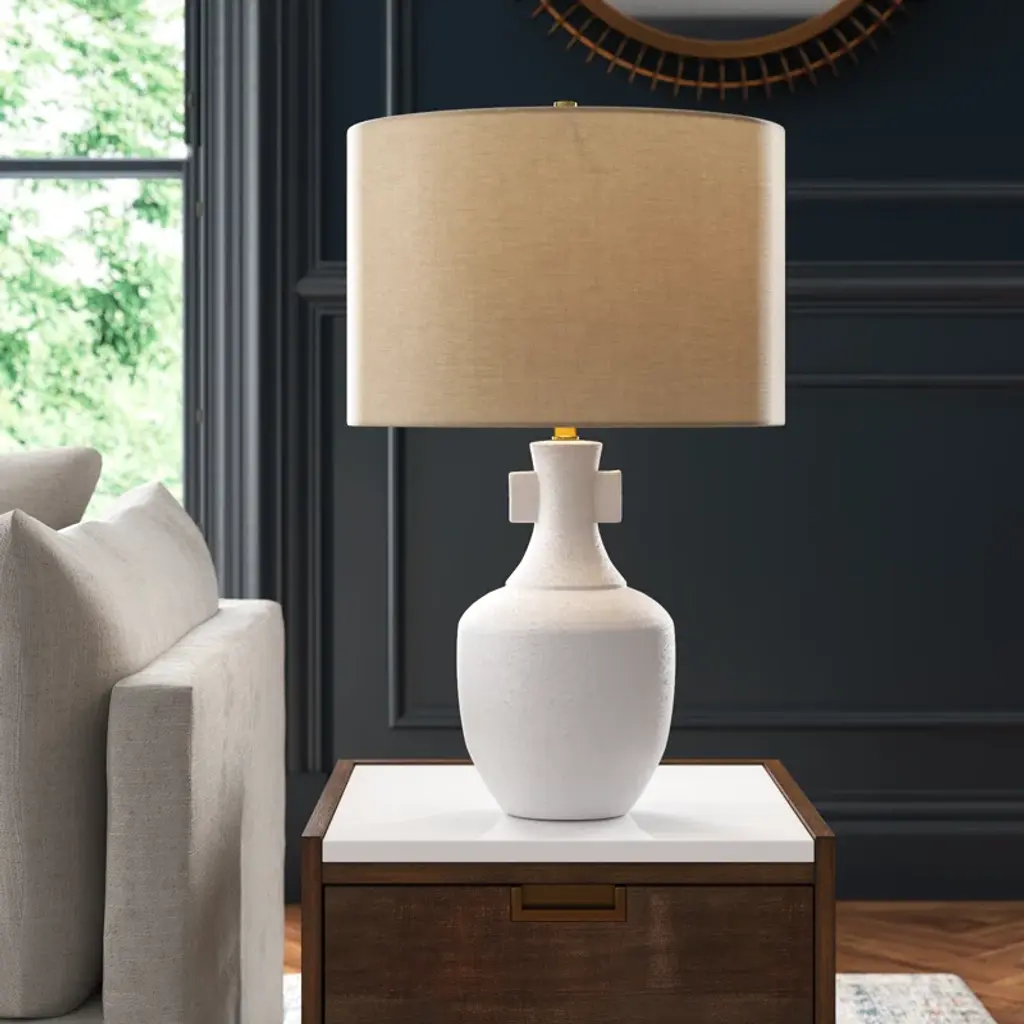 Bring a touch of elegance to your living space with this accent lamp. This eye-catching light features a ceramic body and linen lamp shade that adds a modern, sophisticated look to any room. The timeless design is perfect for adding ambient lighting while still making a style statement. Wipe clean with a dry cloth for easy maintenance. With its stylish design, this accent lamp is sure to become an instant favorite in your home.