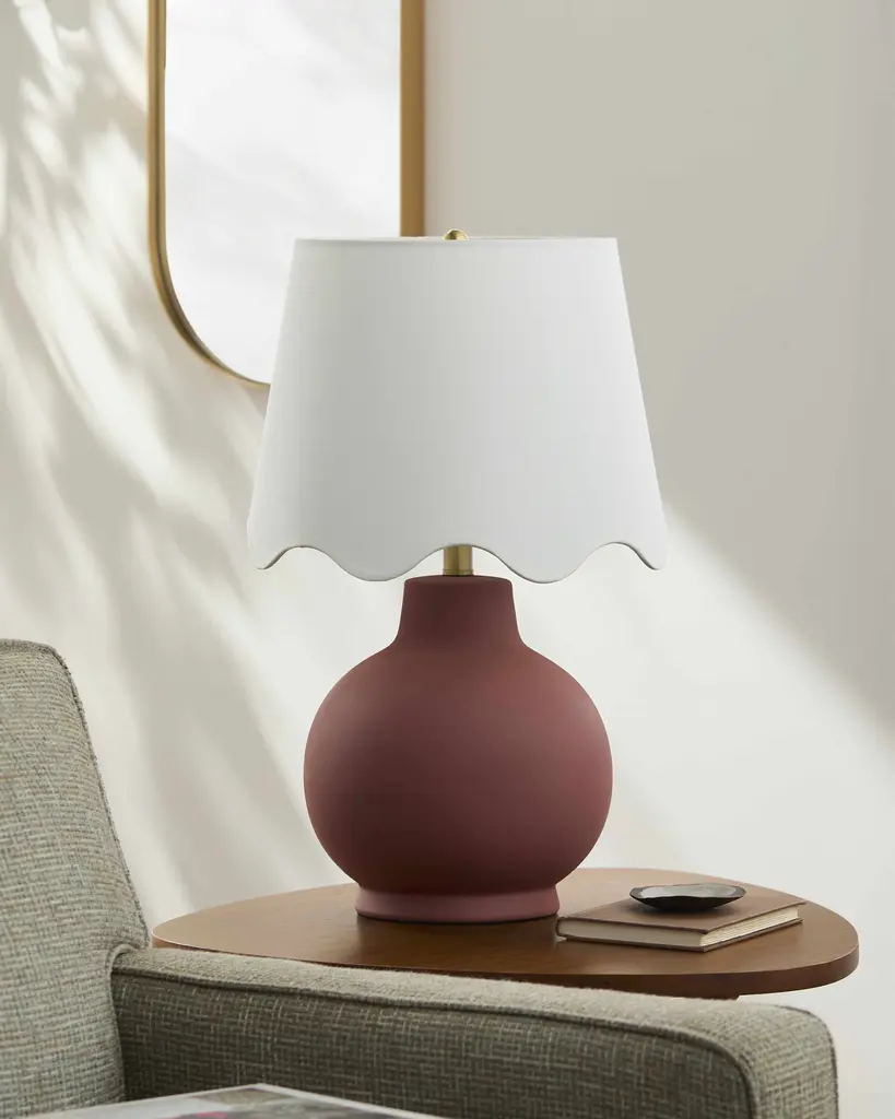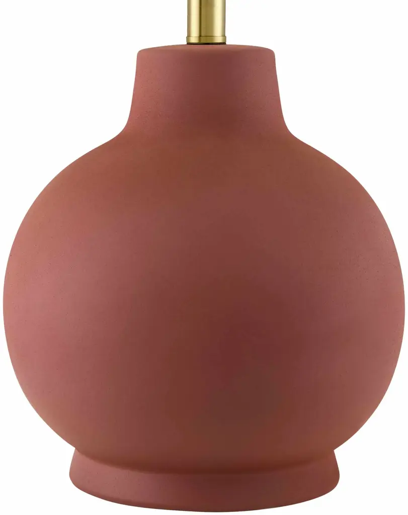Collection: Ranshofen Colors: Dark Red, White, Metallic Gold, Translucent Material: Body: Ceramic / Base: Iron / Shade (Outside): Linen / Shade (Inside): Polyester / Finial: Iron Styles: Traditional Made In: China Lighting Type: Accent Table Lighting Base: Iron Shade Material: Linen, Polyester Shade Color: White Cord Length: 6' Switch Type: On/Off Number of Bulbs: 1 Socket Type: E-26 Bulb Wattage: 100W