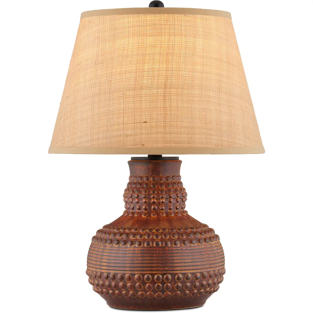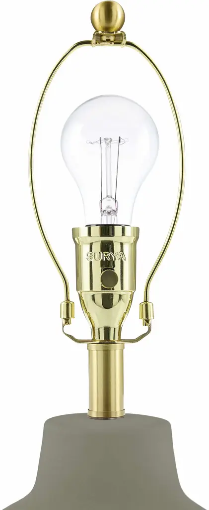 Collection: Ranshofen Colors: Green, Dark Red, Clear, Metallic Gold, Translucent Material: Body: Ceramic / Base: Iron / Shade (Outside): Linen / Shade (Inside): Polyester / Finial: Iron Styles: Traditional Made In: China Lighting Type: Accent Table Lighting Base: Iron Shade Material: Linen, Polyester Shade Color: Clear, Brown Cord Length: 6' Switch Type: On/Off Number of Bulbs: 1 Socket Type: E-26 Bulb Wattage: 100W
