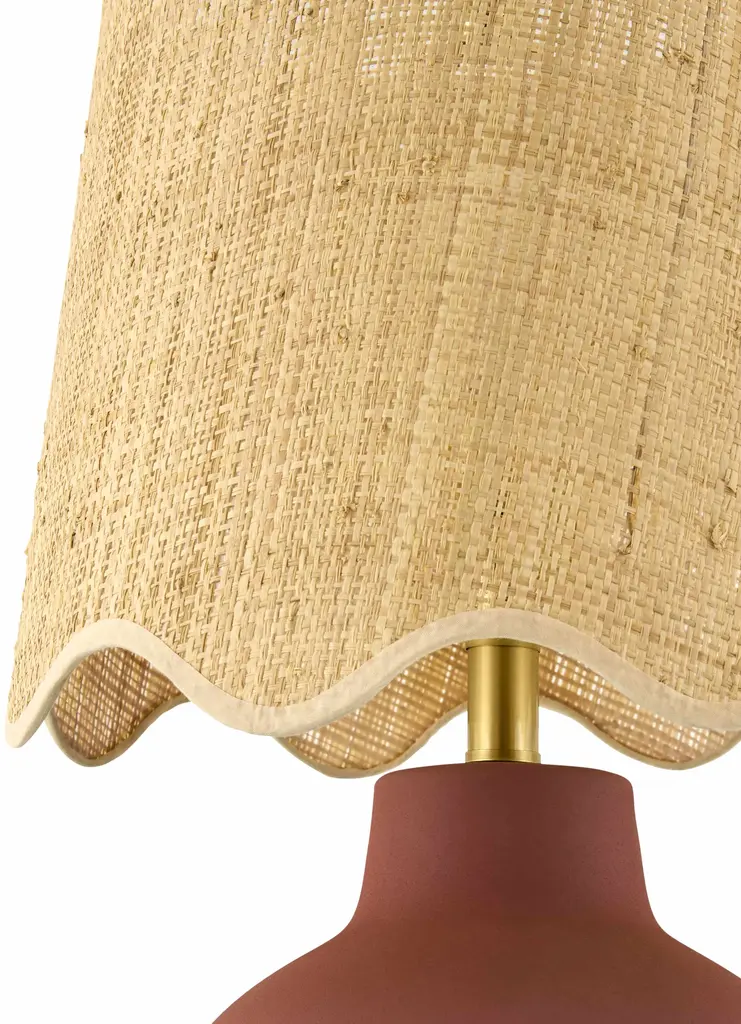 Collection: Ranshofen Colors: Dark Red, Clear, Metallic Gold, Translucent Material: Body: Ceramic / Base: Iron / Shade (Outside): Linen / Shade (Inside): Polyester / Finial: Iron Styles: Traditional Made In: China Lighting Type: Accent Table Lighting Base: Iron Shade Material: Linen, Polyester Shade Color: Clear, Brown Cord Length: 6' Switch Type: On/Off Number of Bulbs: 1 Socket Type: E-26 Bulb Wattage: 100W