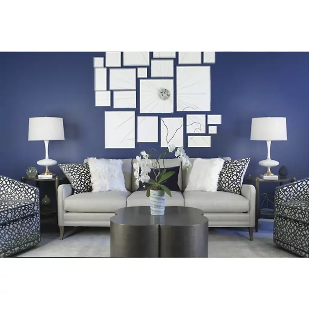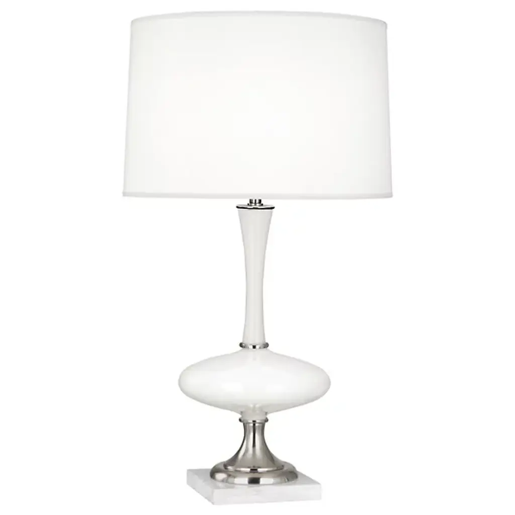 Named after the Spanish name for Rachel, the Robert Abbey Raquel Tall Table Lamp features eye catching curves in a monochromatic color scheme. The combination of fluid shapes with a limited color palette makes this piece effortlessly elegant while still staying relatively simple. The metal accents juxtaposed with the marble base adds just the right amount of contrast as well.
