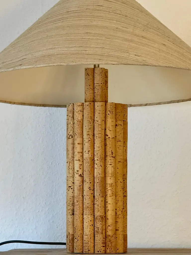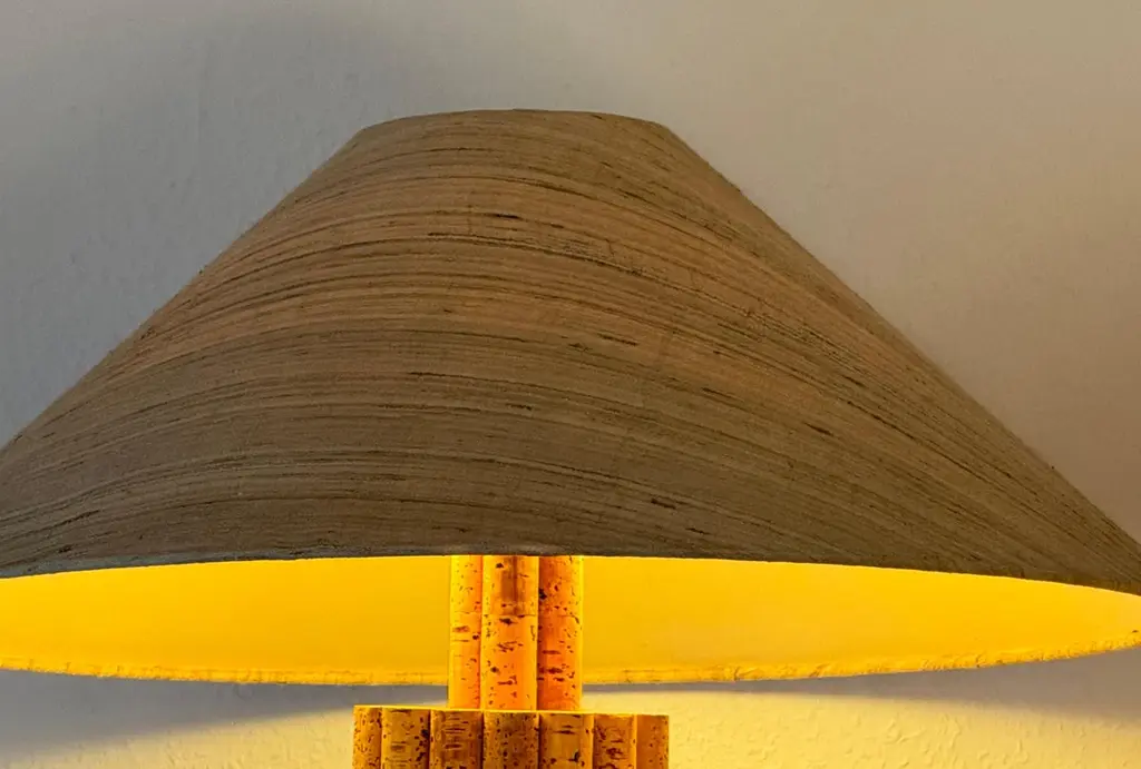 Rare Cork And Row Silk Table Lamp By Ingo Maurer For Design M, 1970s