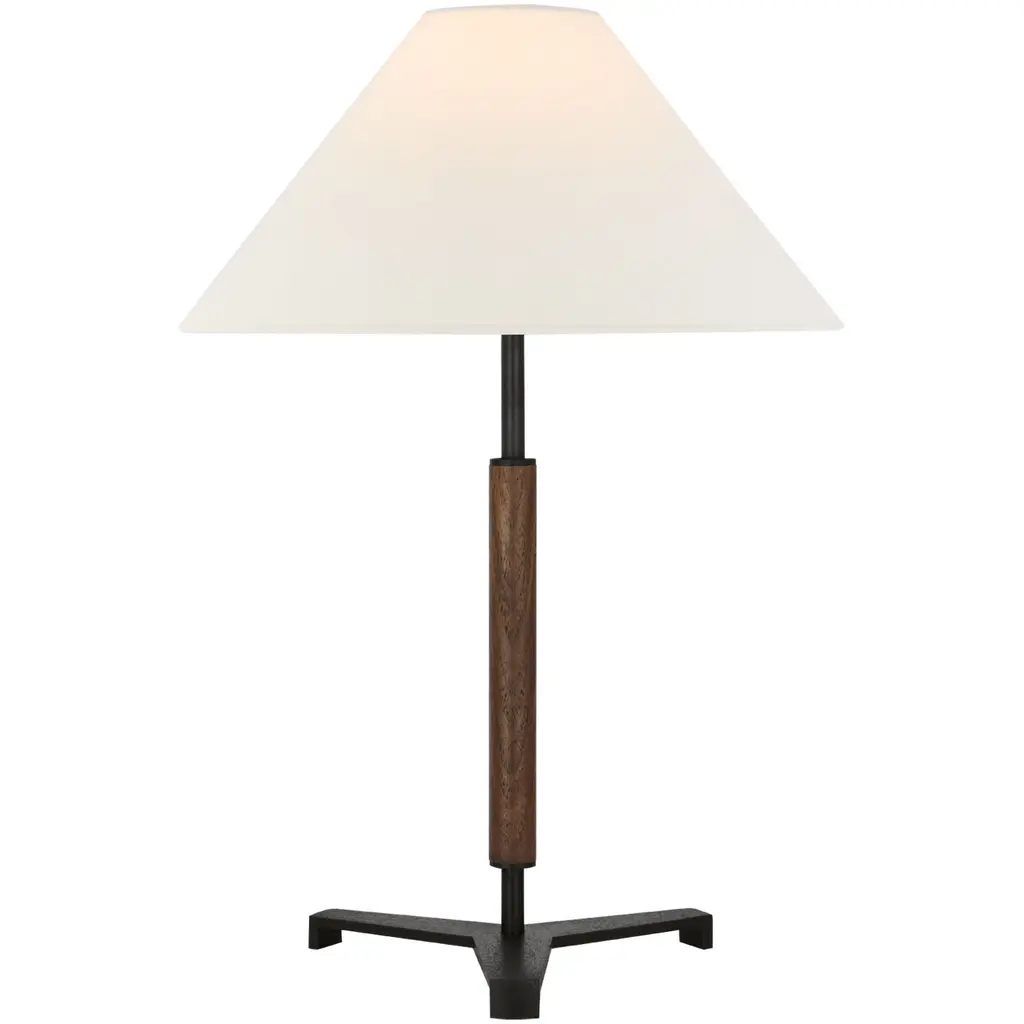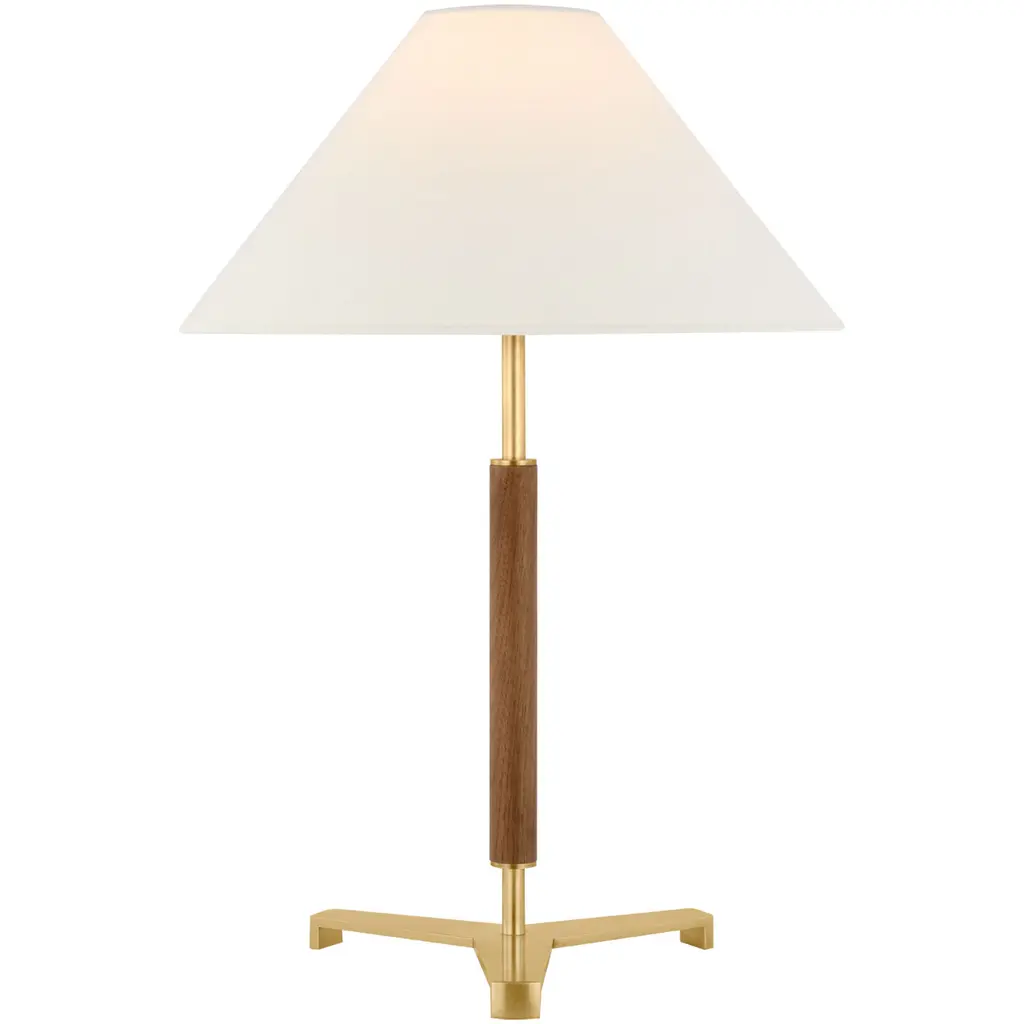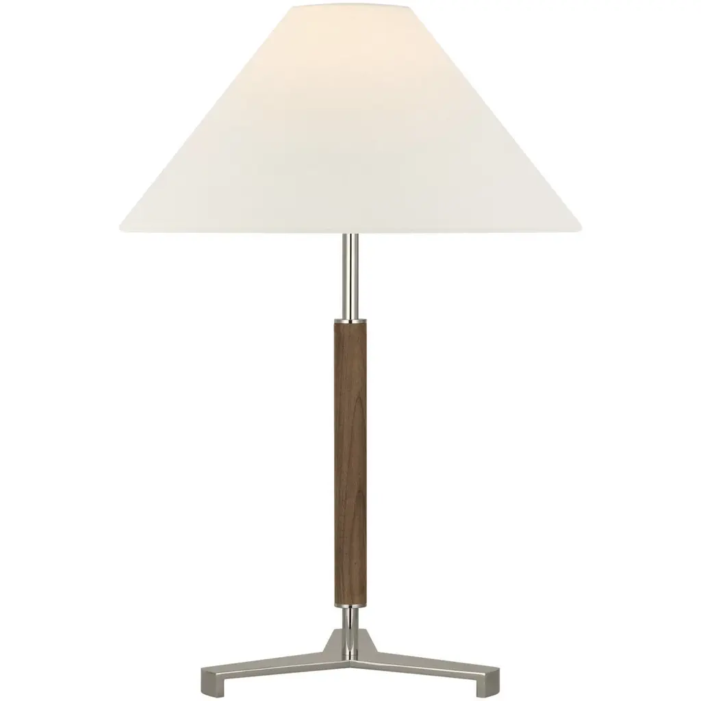 Amaya 20" Table Lamp in Polished Nickel and Walnut with Linen Shade