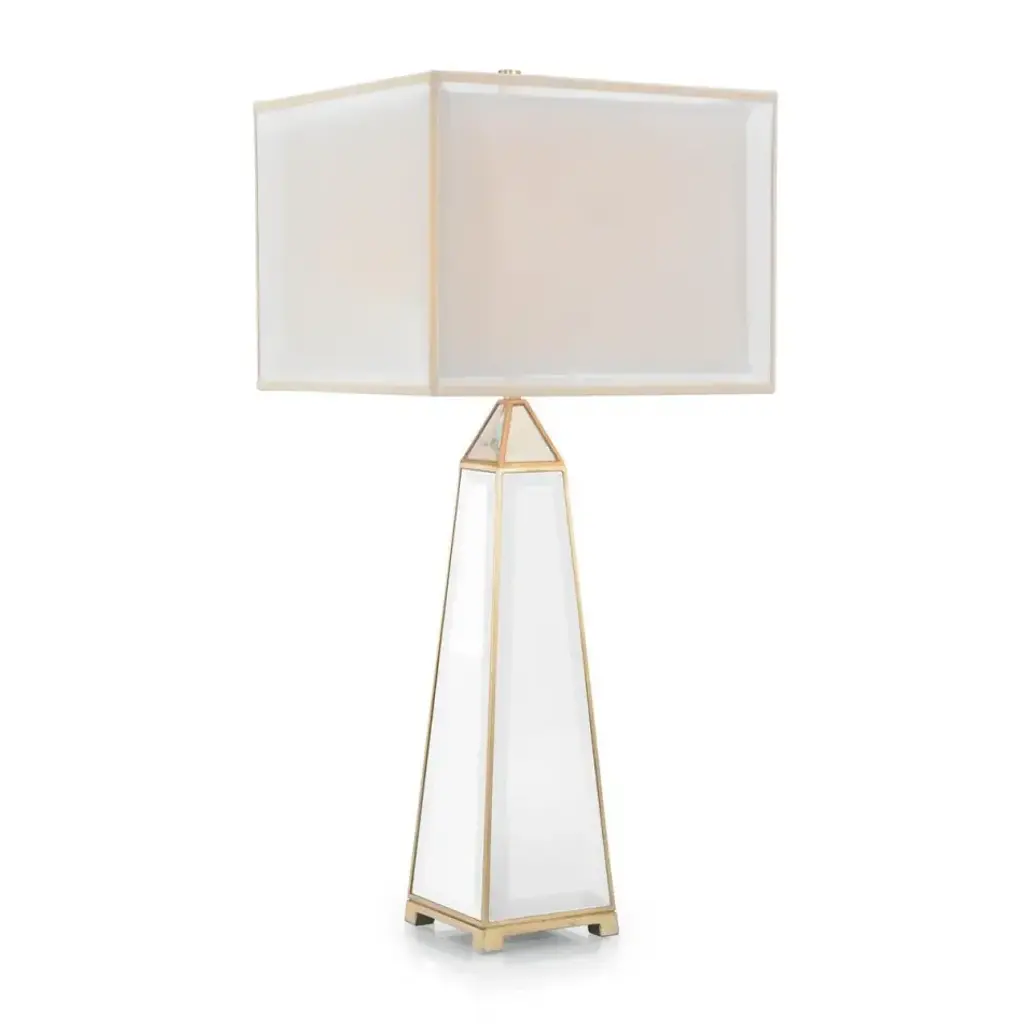 The Rayna Table Lamp is a stunning design statement, infusing a space with opulent tones and intricate textures. The body showcases a stylish gold tone with a radiant sunburst pattern on all sides, elevated through Silver Leaf accents matching hardware in Polished Nickel. A rectangular base of clear crystal and matching finial complete the look of this table lamp with a three-way switch.