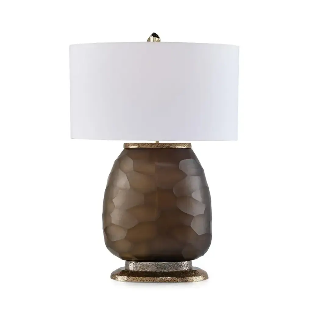 Reactive Glaze Table Lamp - Speckled Brown and Brushed Gold Body - Off-White Shade