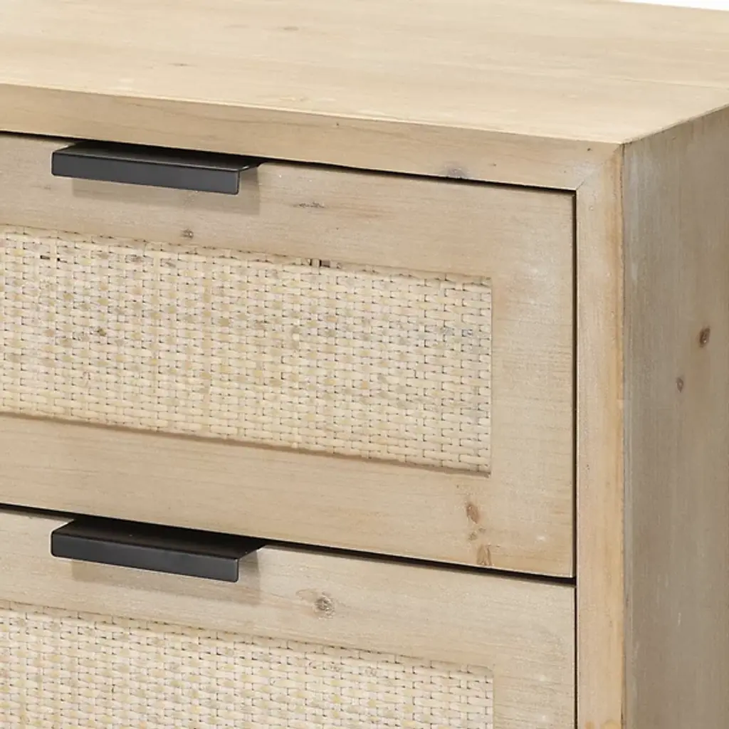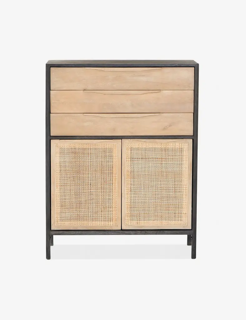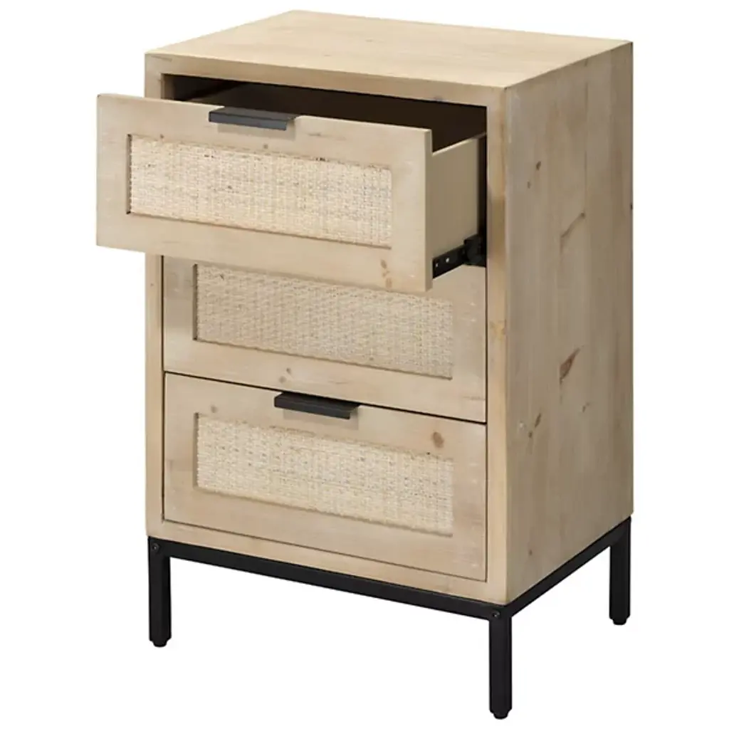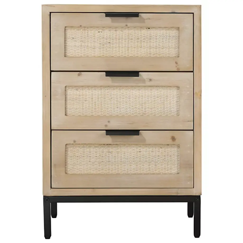 The Reed 3 Drawer Side Table from Alder & Ore makes organization simple. Featuring gorgeous rattan panel drawers, this furnishment provides ample amounts of storage space. Your side table is composed of MDF veneer and is supported by a frame of hand-forged iron. Each drawer has its own metal pull handle for quick access. The Tomas 3 Drawer Side Table’s flat surface facilitates the placement of your favorite table lamp.