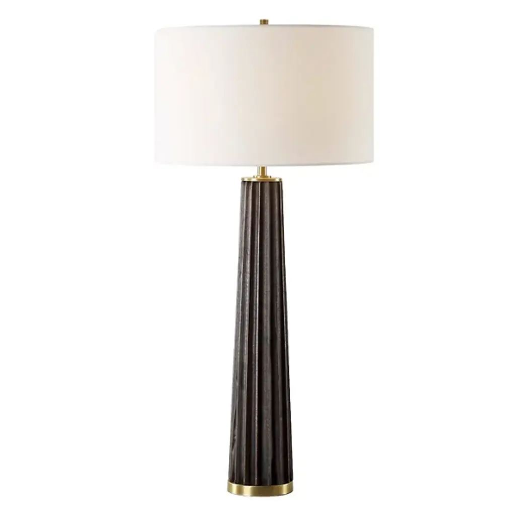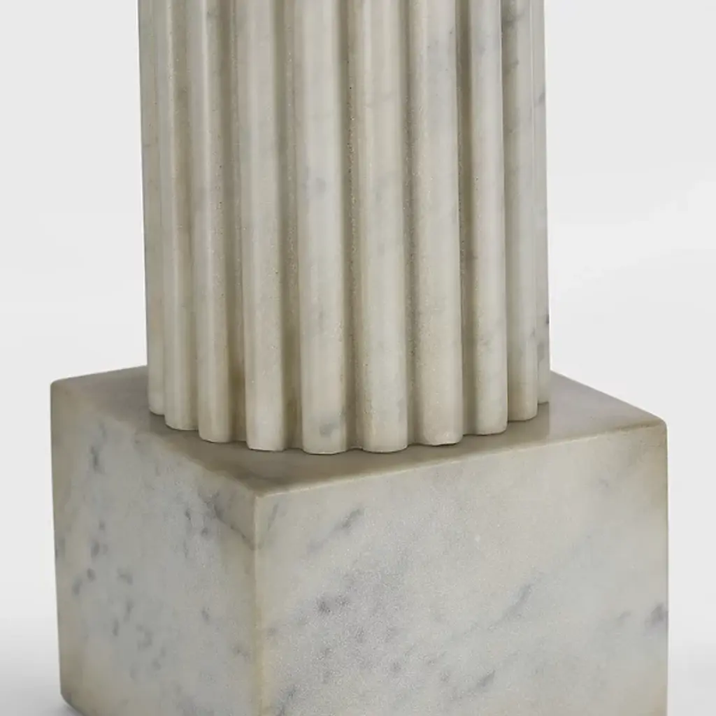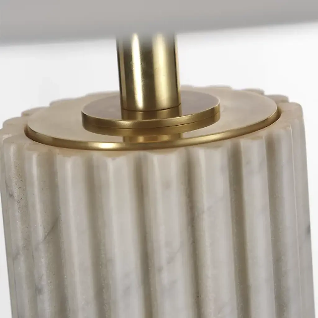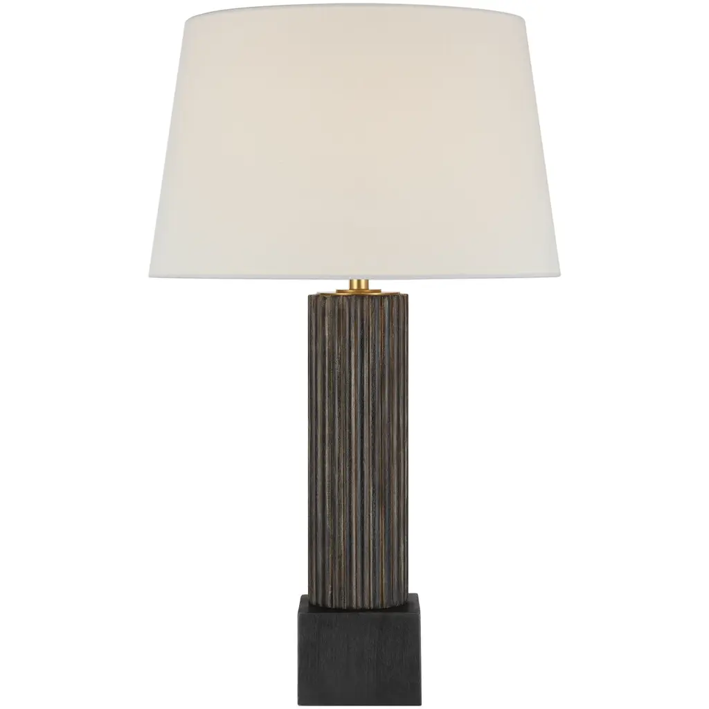 The Reeve Table Lamp from Visual Comfort Signature brings classical column architecture into intimate spaces. Design duo Chapman & Myers crafted this marble and brass creation with fluted detailing that catches light and creates subtle shadow play throughout the day. The solid base anchors the lamp with a weight that feels generous yet refined. Its proportions draw inspiration from ancient Greek temples while feeling decidedly current. The lamp transitions effortlessly between traditional and modern settings. Perfect for nightstands, living room side tables, or entryways, this lamp bridges historical references with practical illumination.