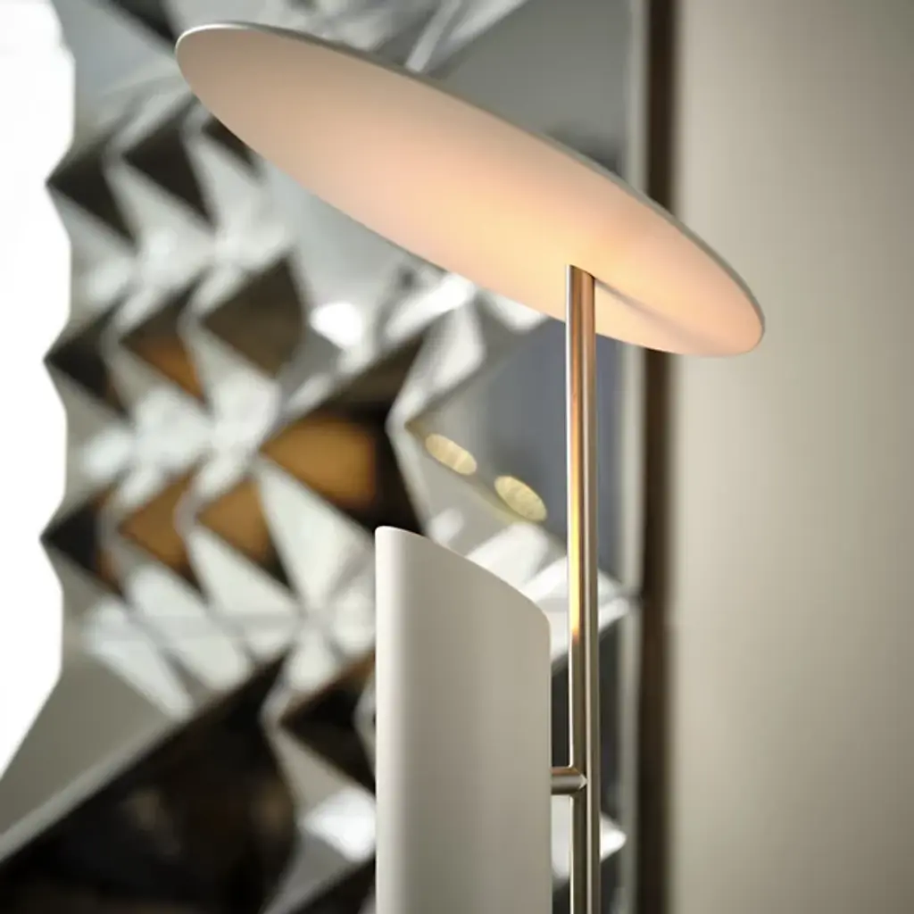 The Reflect Table Lamp from Verpan is designed by Verner Panton. This table lamp takes on a minimalistic design for streamlined functionality. It showcases Panton’s capability to set the mood and manipulate light easily. Composed of refined steel, Reflect showcases a disc-shaped crown that allows the LED light to splay throughout your surroundings effortlessly. The body of the lamp boasts penne-lisce-style contours for mid-century modern flair. Your table lamp includes a fabric cord with an on/off switch.