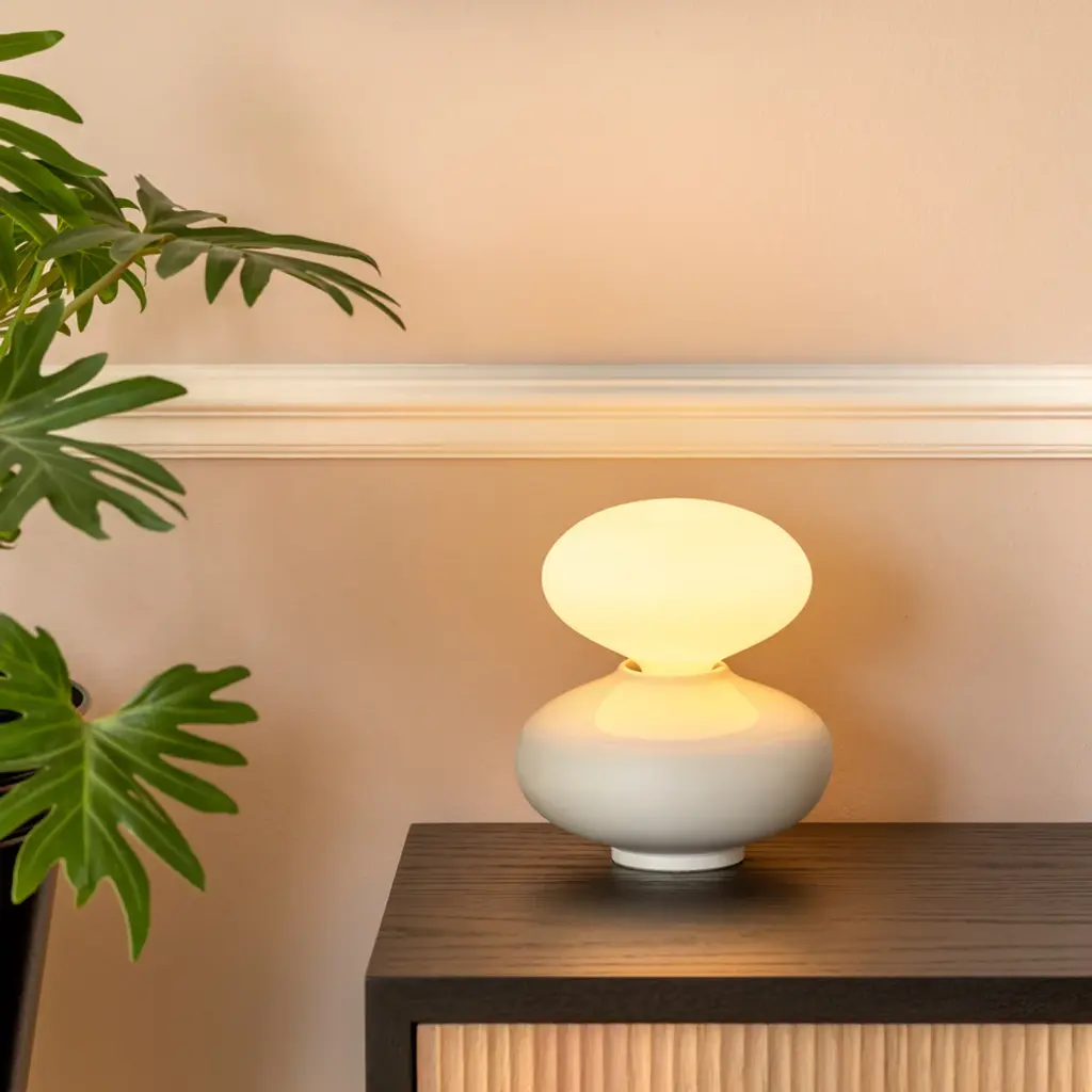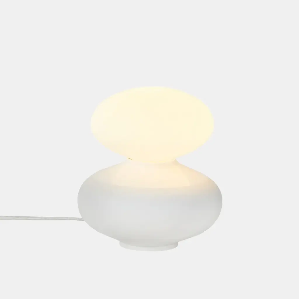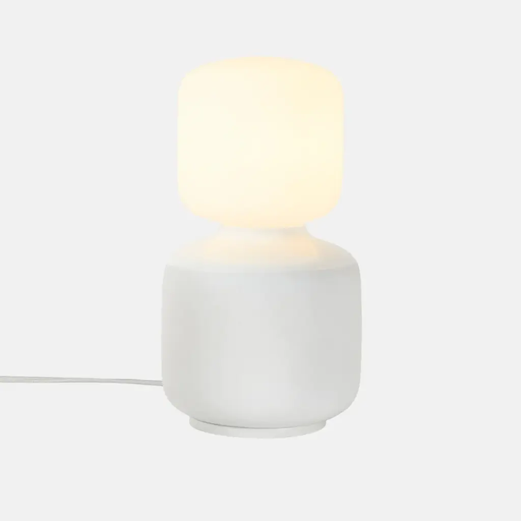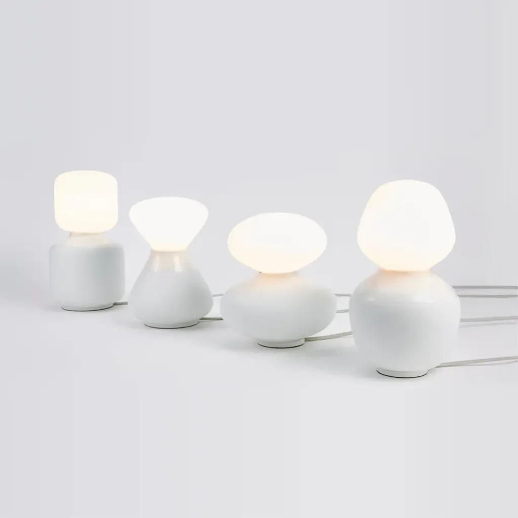 The Reflection Lamp brings a calming beauty to your space with a hand-thrown porcelain base that sits beneath one of four unique bulbs: Enno, Noma, Oblo, and Oval.