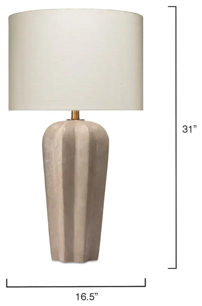 The Regal Table Lamp is a handsome piece presented by Jamie Young Co. The juxtaposition of the industrial concrete finish on a sophisticated form elevates this table lamp to a refined combination. Light drapes across the body like a soft curtain. Whether intended for business, leisure, or both, display as a solo piece or in multiples to animate your space with light.