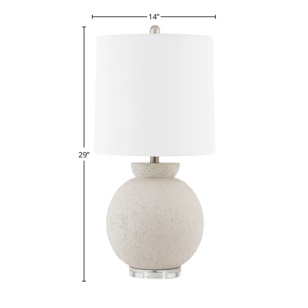 Regal Table Lamp, Gray Cement With Drum Shade, Off White Linen