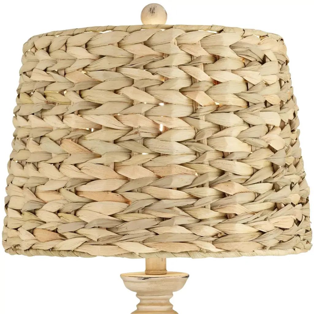 Almost hear the ocean waves and feel the sand between your toes when you bring home the Carlisle tropical resin and sea grass table lamps set of two. From the Regency Hill brand, the two lamps feature a resin construction offset by sea grass tapered drum shades. Easily control the designs with the on-off socket switches.