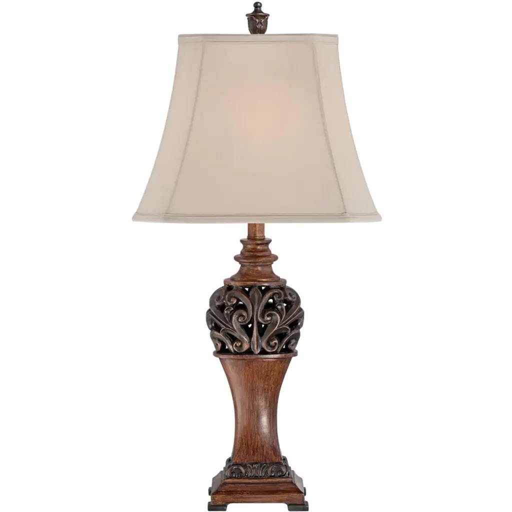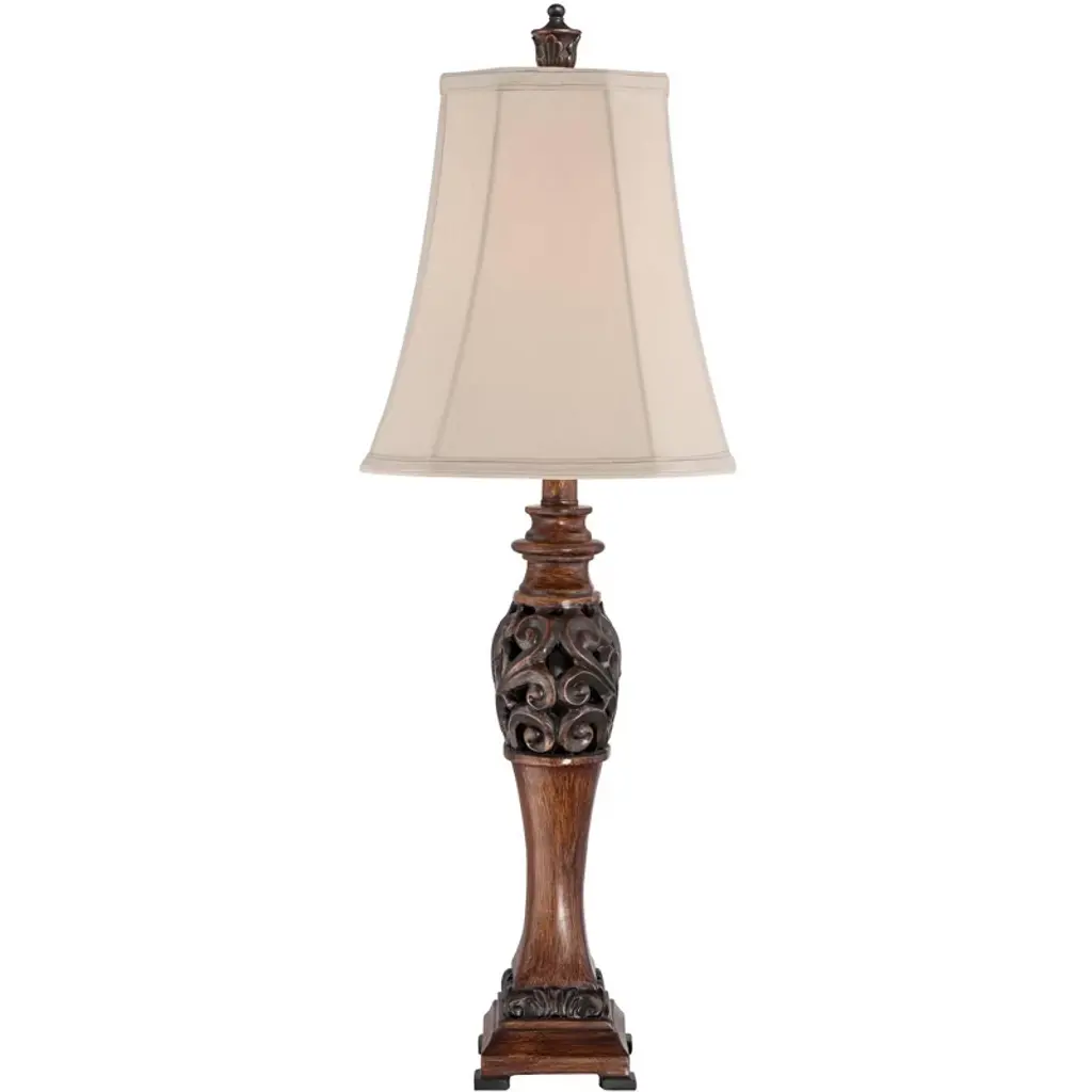 Designed by the Regency Hill brand, this set of two traditional carved table lamps include smart sockets. Complete with voice and app control functionality, the lamps are a dynamic addition in a living area or bedroom. Each boasts an ornate wood finish base complete with intricate botanical carvings that create texture and rich elegance. Creme shades and decorative finials complete each lamp with soft, diffused illumination perfect for ambiance in your daily routines.