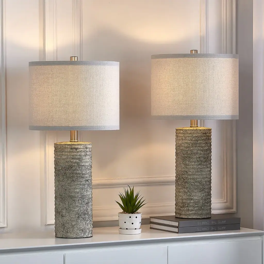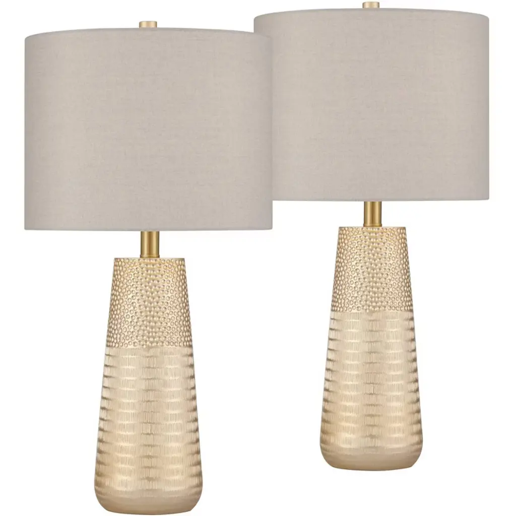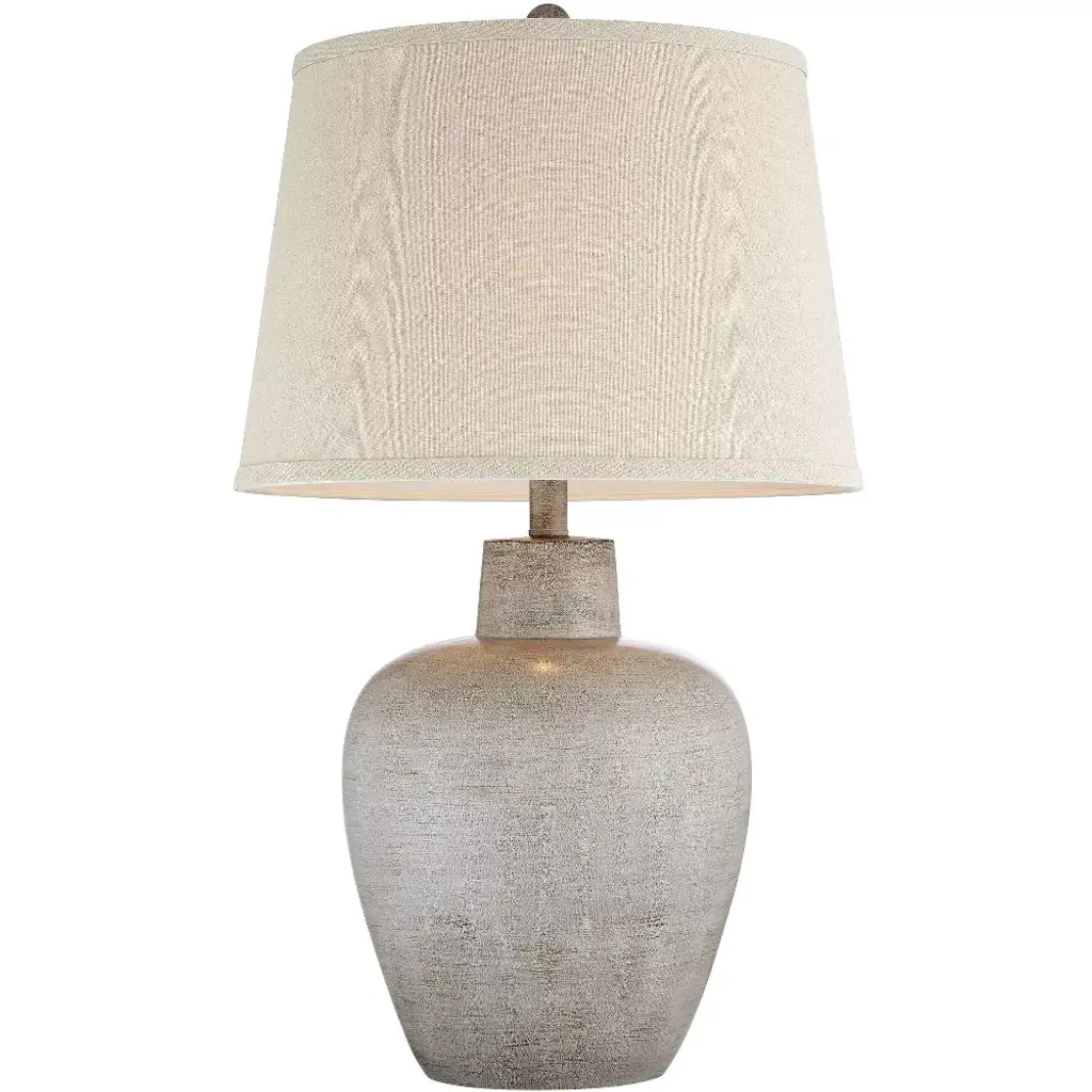 Capture the appeal of earth-inspired decor this set of two urn table lamps from Regency Hill. Each lamp is crafted from ceramic-look resin and given a gorgeous neutral finish, with tapered drum shades that deliver a casual classic look. Perfect for rustic or Southwest style settings.