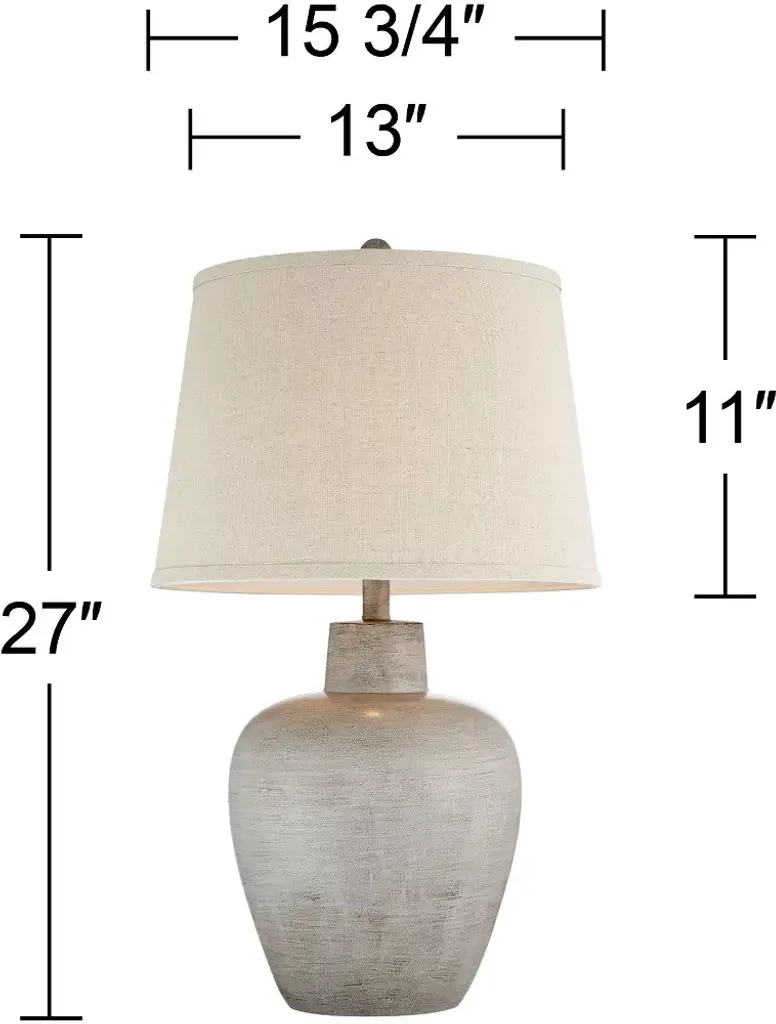 Regency Hill Glenn Rustic Country Cottage Table Lamps 27" Tall Set Of 2 Brushed Gray Terra Cotta Beige Fabric Shade For Bedroom Living Room Nightstand