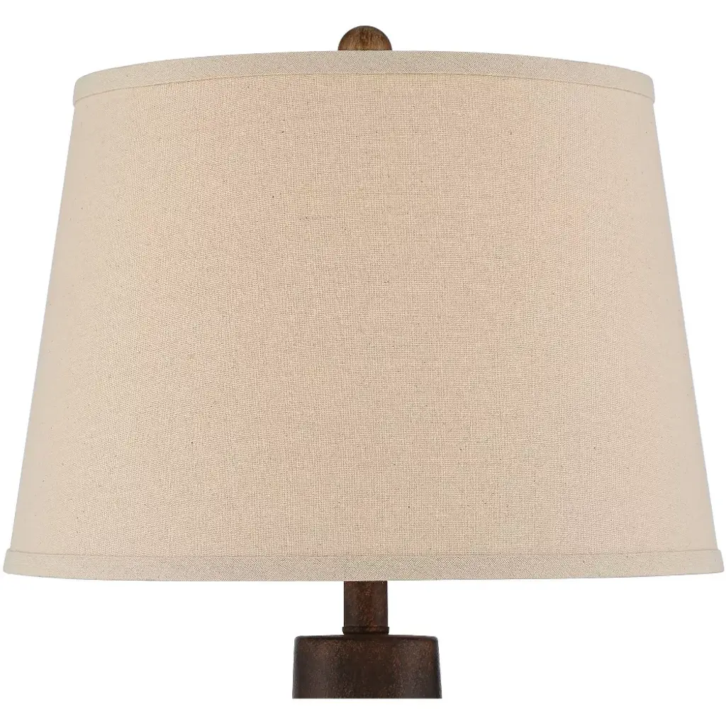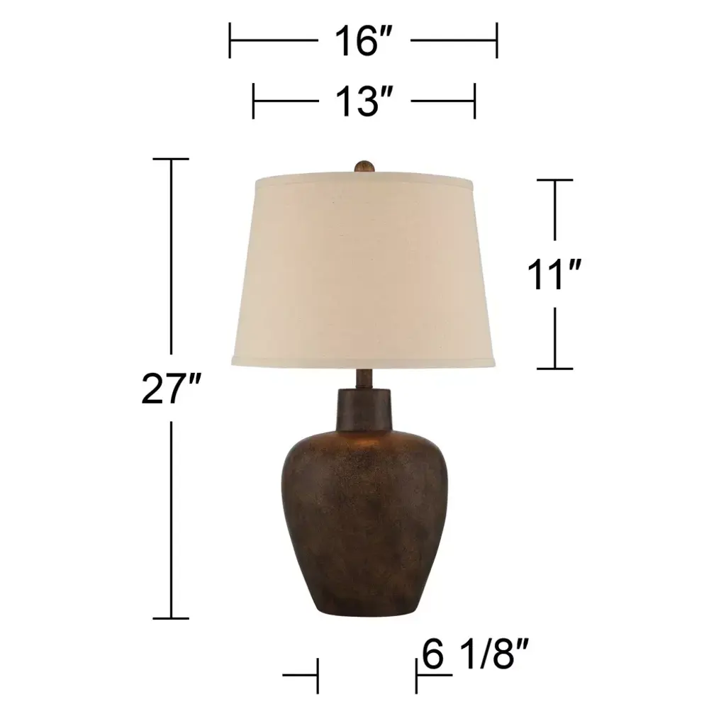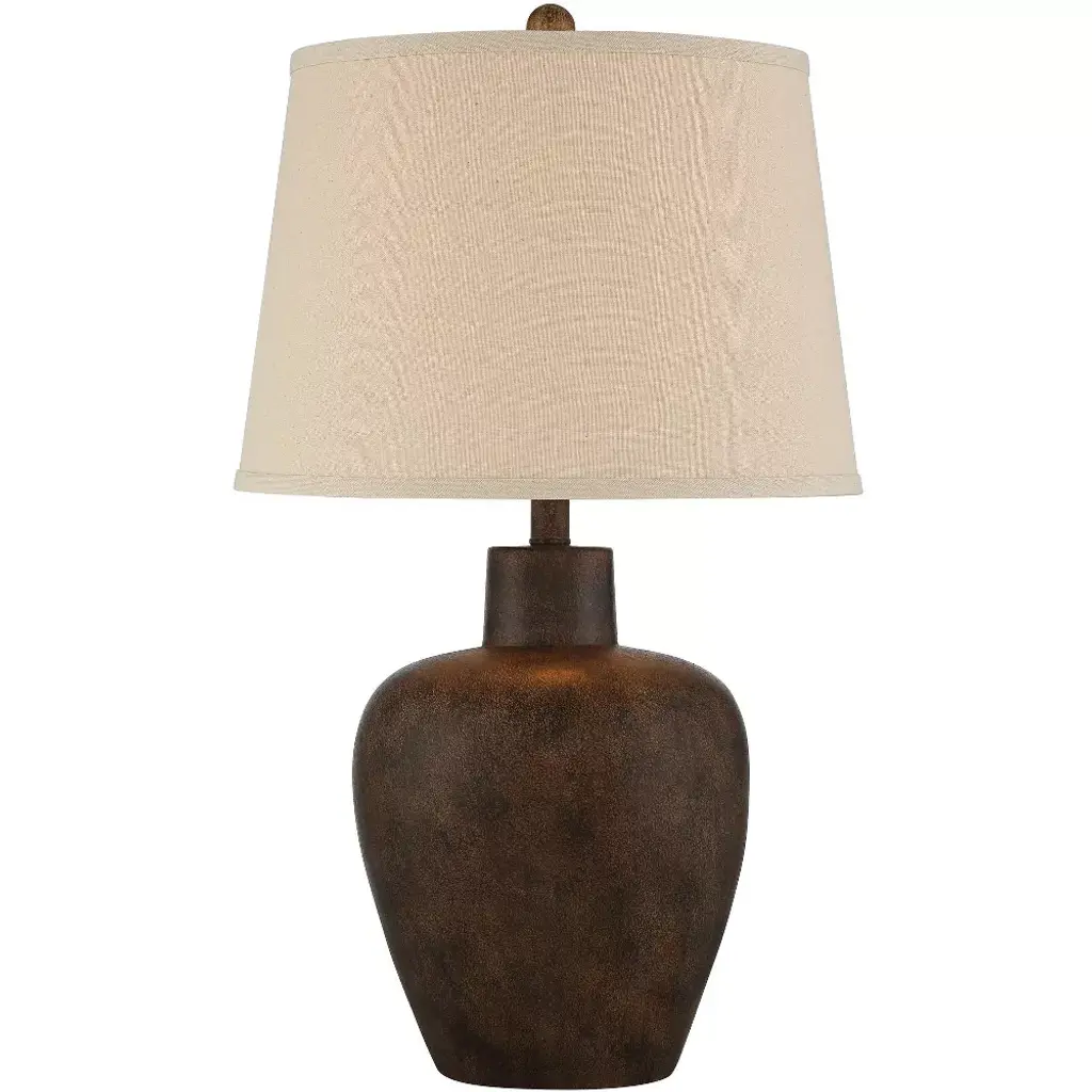 Capture the appeal of earth-inspired decor this set of two urn table lamps from Regency Hill. Each lamp is crafted from ceramic-look resin and given a gorgeous dark terra cotta finish, with tapered drum shades that deliver a casual classic look. Perfect for rustic farmhouse or Southwest style settings.