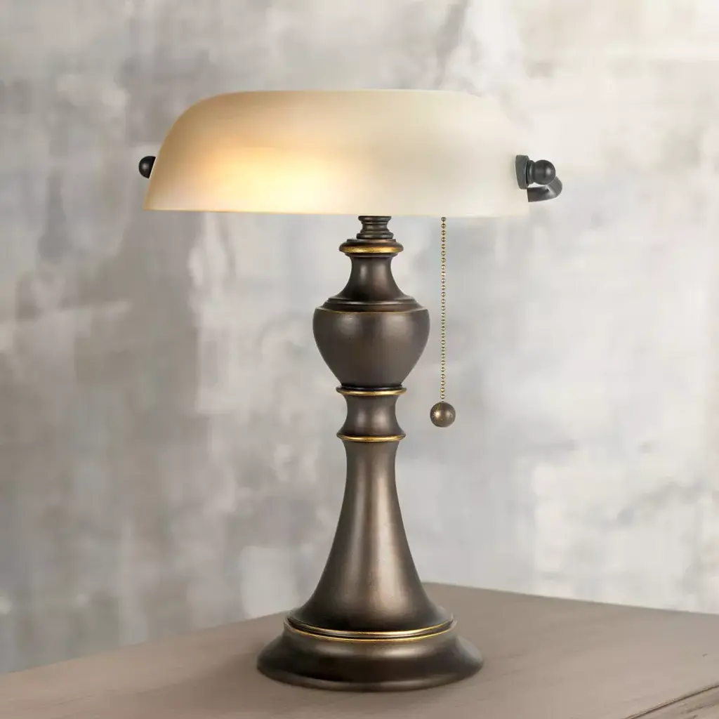 Regency Hill Haddington Traditional Piano Banker Table Lamp 16" High Antique Bronze Metal Alabaster Glass Shade For Bedroom Living Room Bedside Office
