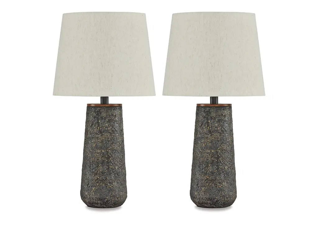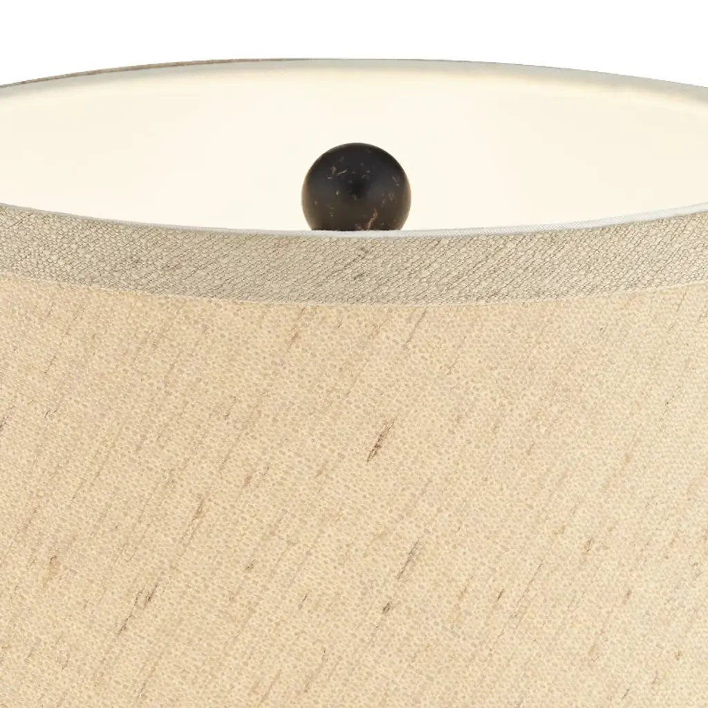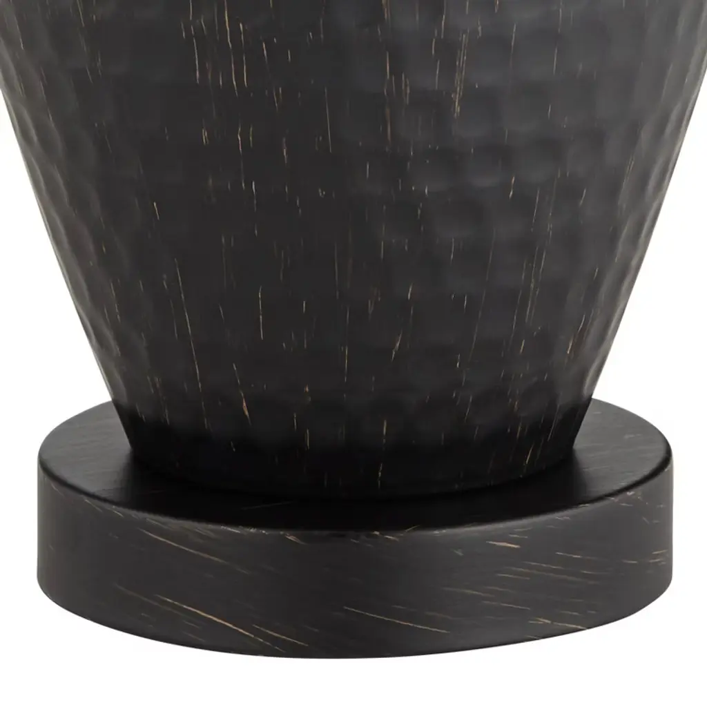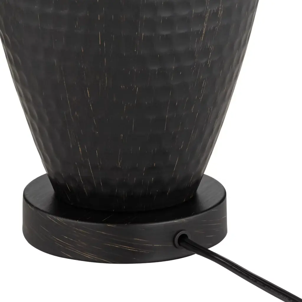 Add light and attractive style to any room with this set of two bronze table lamps. The design is attractive with a beautiful hammered texture. Topped with a natural linen empire shade that brings angular balance.