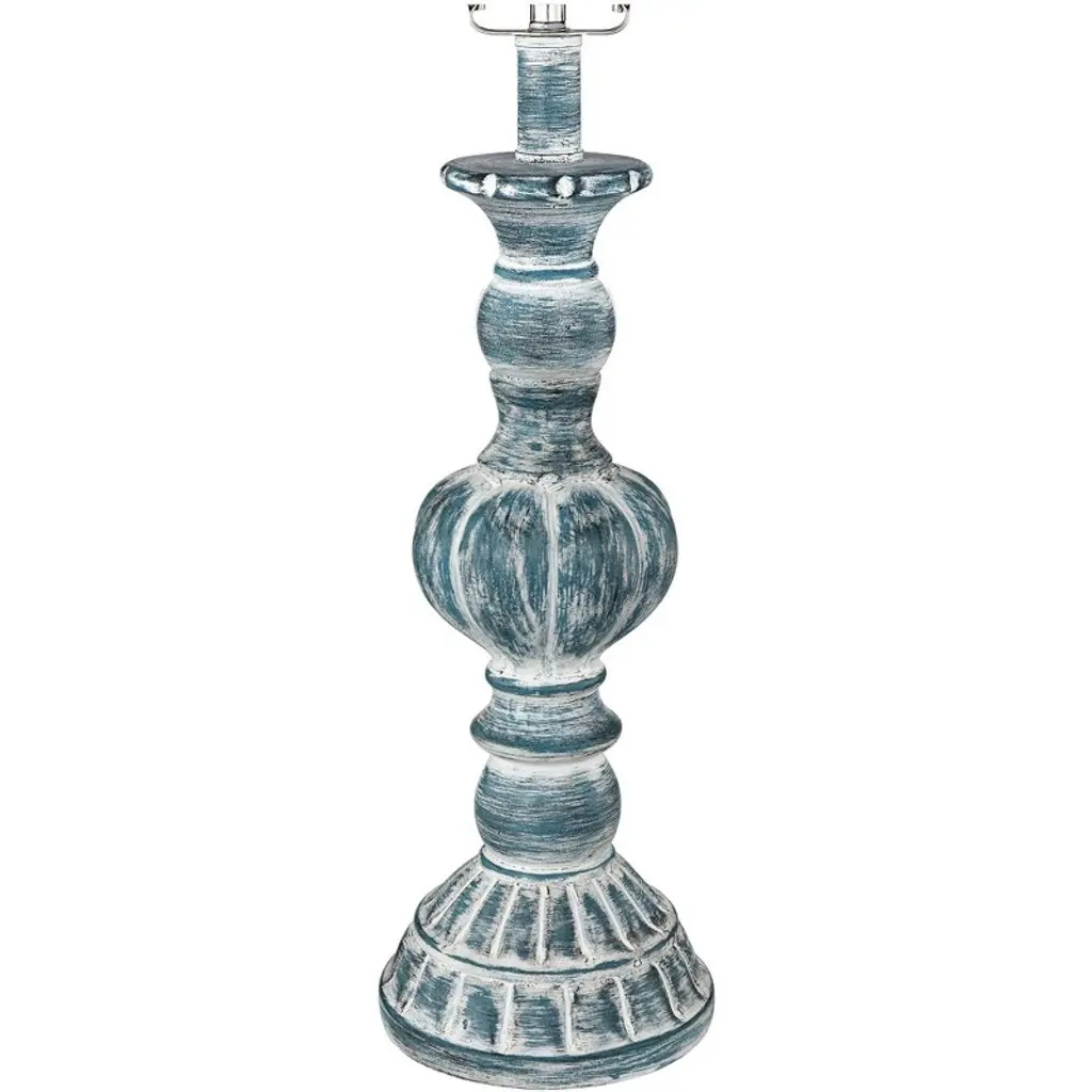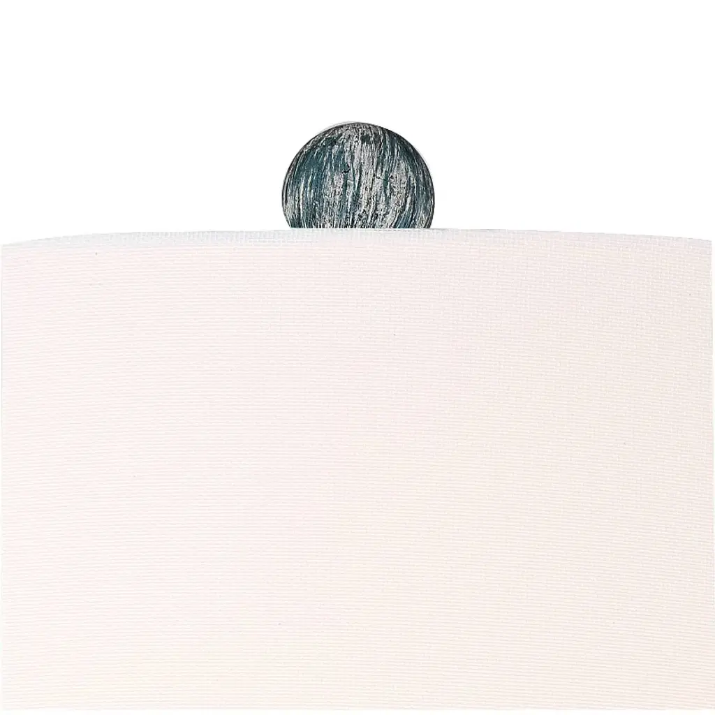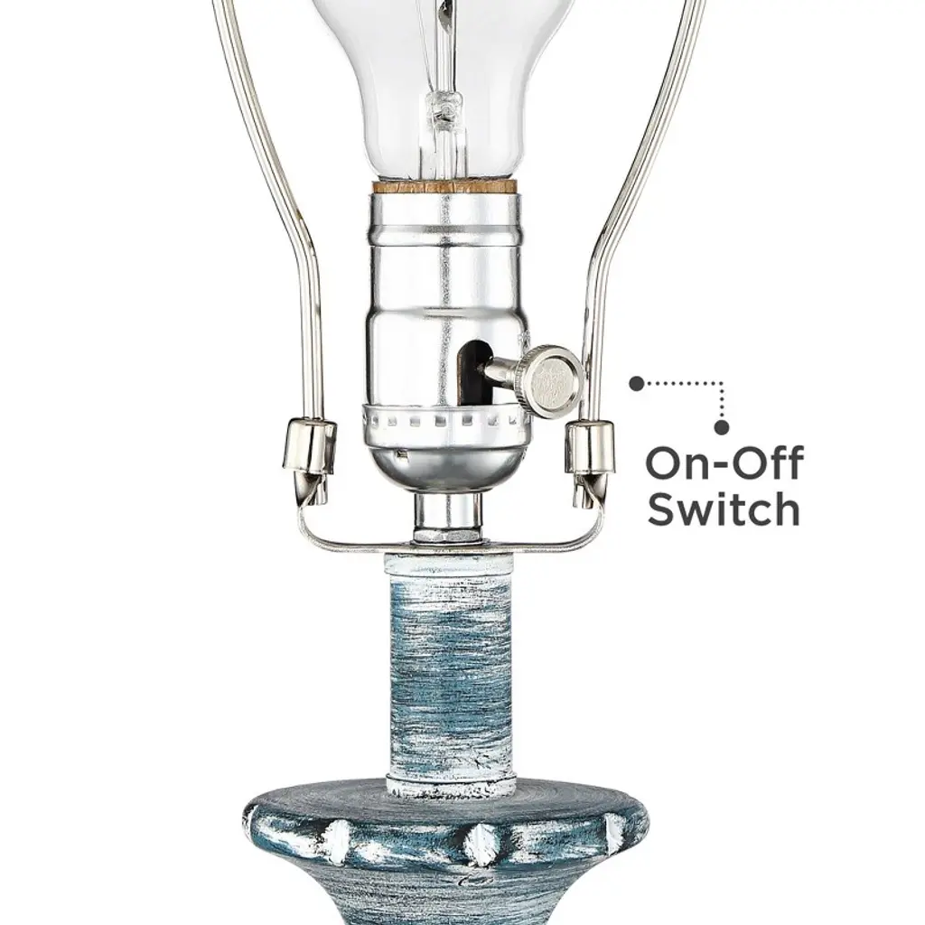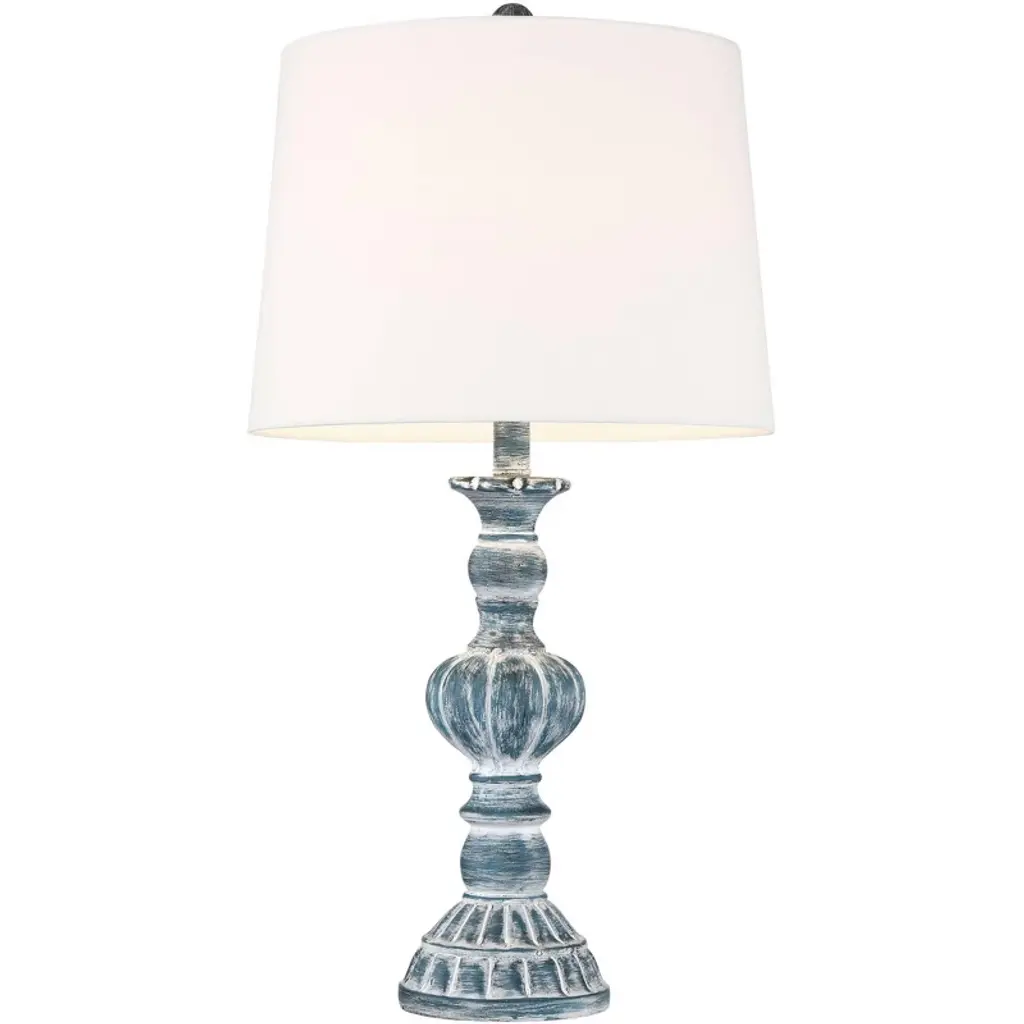 Traditional shape gets a modern makeover with the pop of color on this set of two table lamps from Regency Hill. Constructed of polyresin, the vintage-inspired silhouette features a blue wash finish over its intricate shapes and defined lines. Radiate warmth throughout any space with a flip of the on-off switches. This lamp set comes with two tabletop dimmers, one for each lamp, which allows you to control the level of lighting. Simply insert the lamp plug into the dimmer outlet, and then slide the switch on the control to dim or brighten the lighting. Dimmers are compatible with halogen and incandescent bulbs, and most dimmable CFL and LED bulb designs.