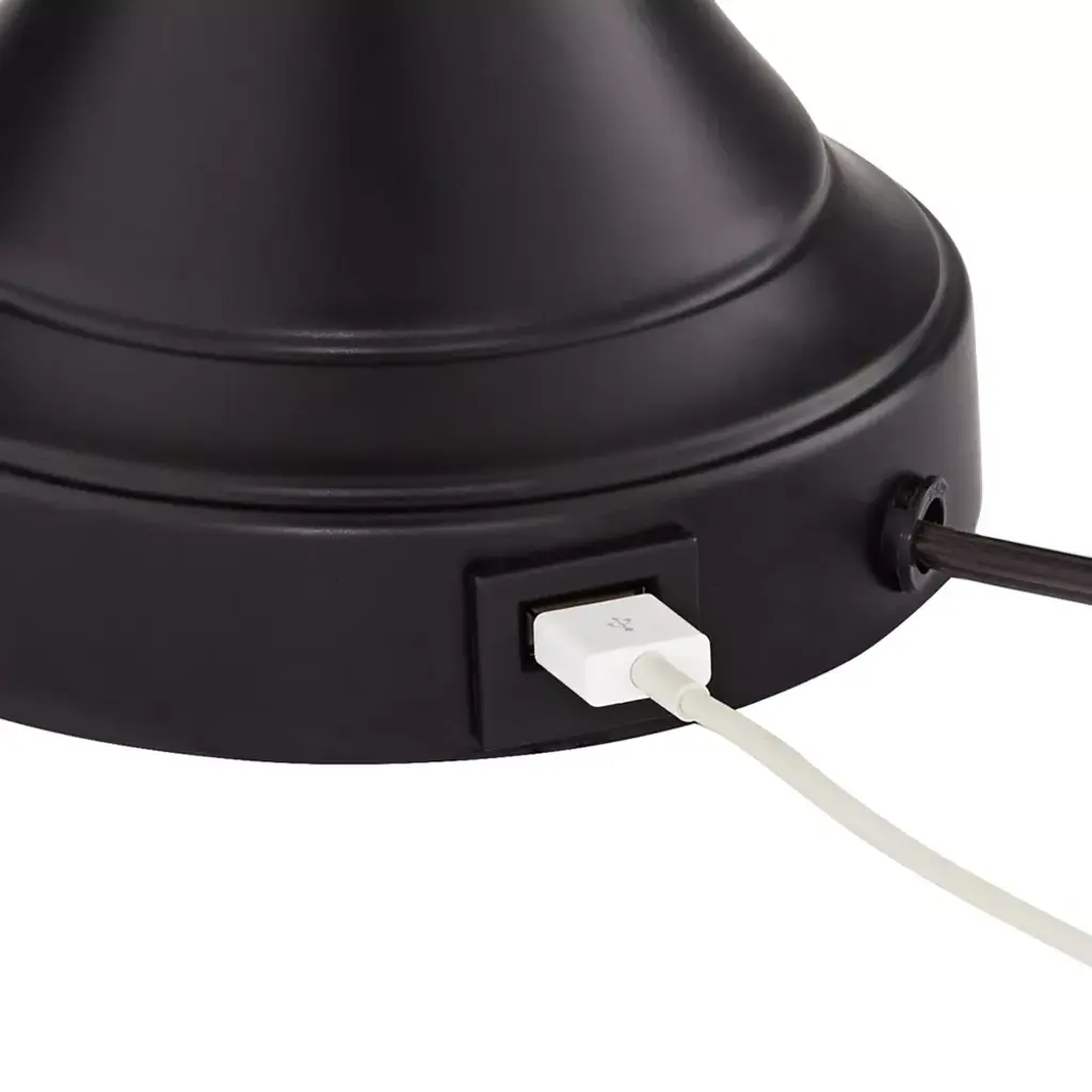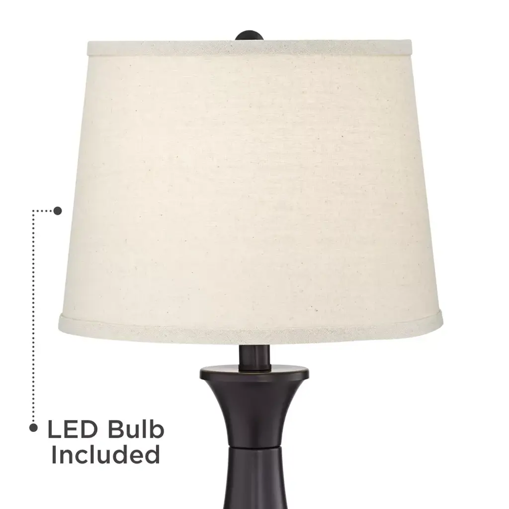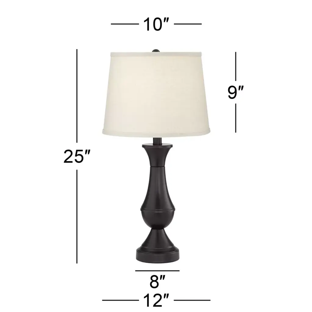 Add some style and lighting to any corner of your home with this pair of classic looking table lamps. The stunning dark bronze finish looks great with the oatmeal shades. Each table lamp has a USB port that lets you charge your devices easily.