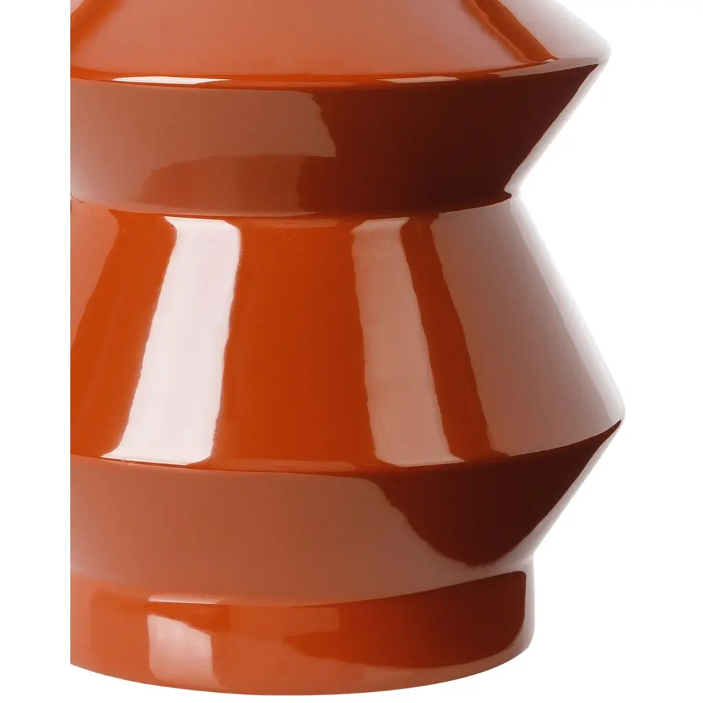 This table lamp presents a beautiful ceramic glazed base with a the funky shape and vibrant shade that make a statement in any space. Made with linen, polyester, ceramic, and metal in China. Wipe clean with dry cloth.