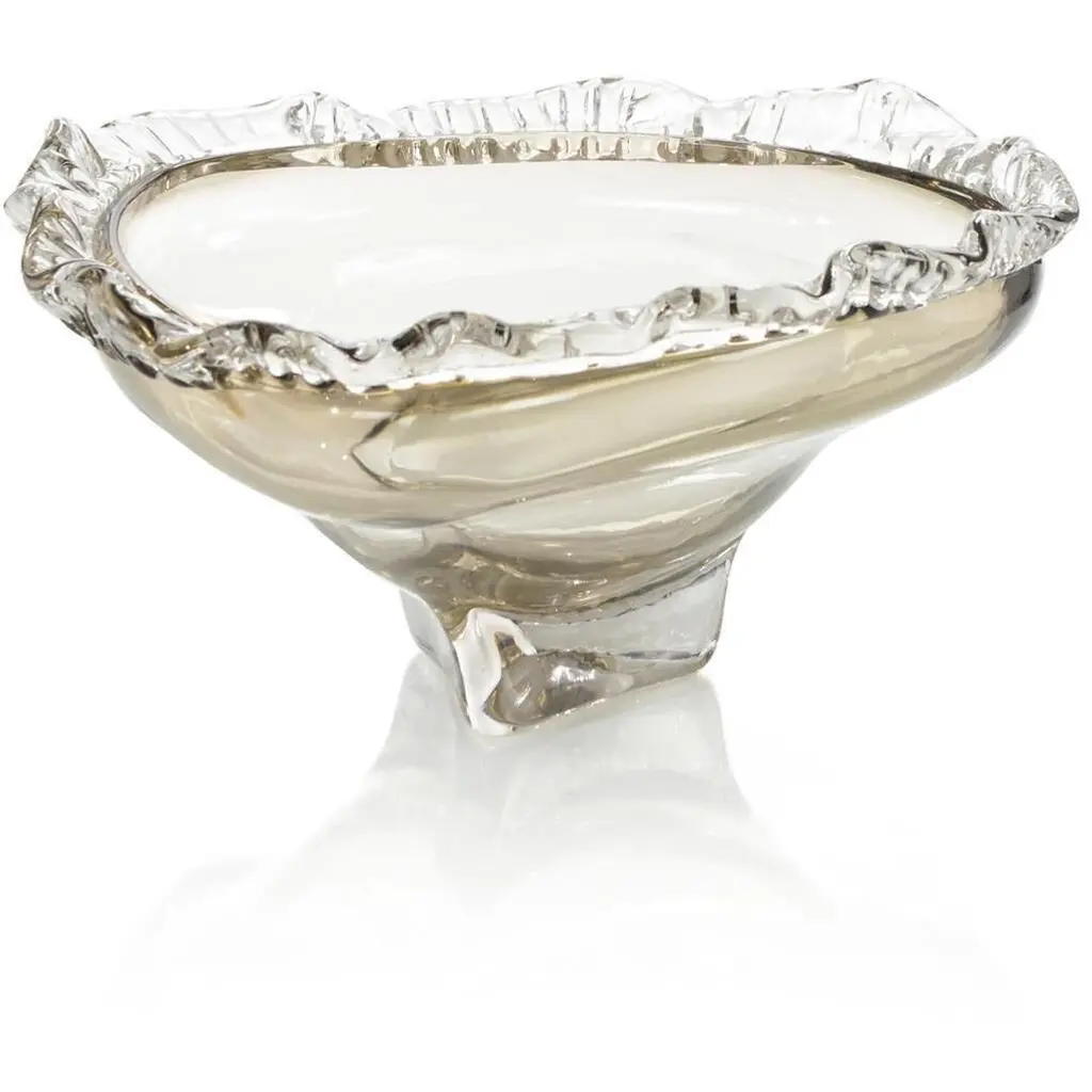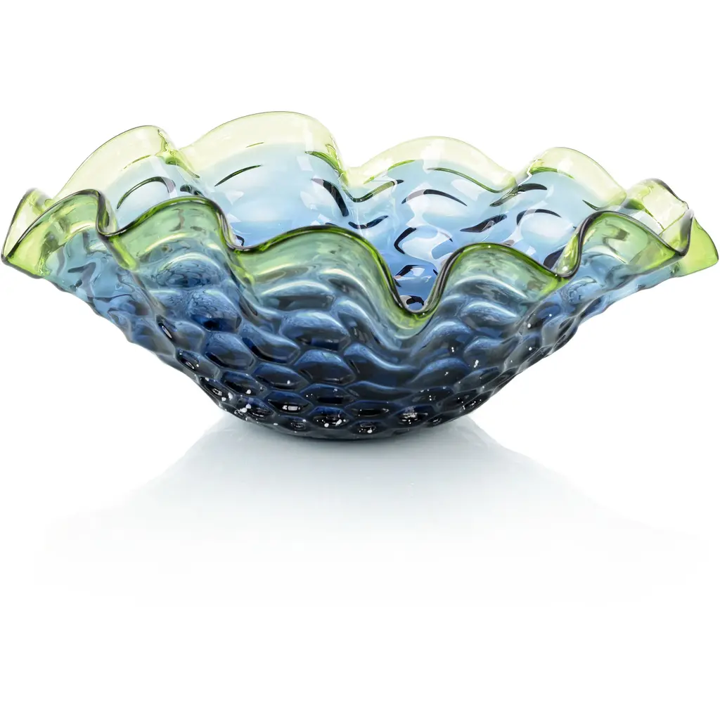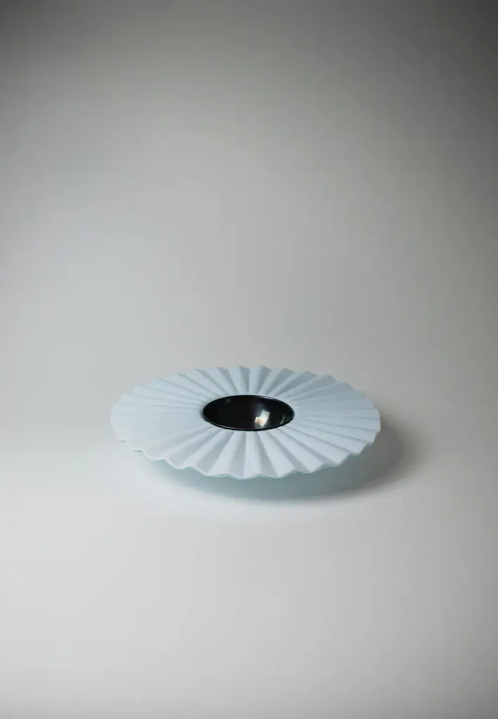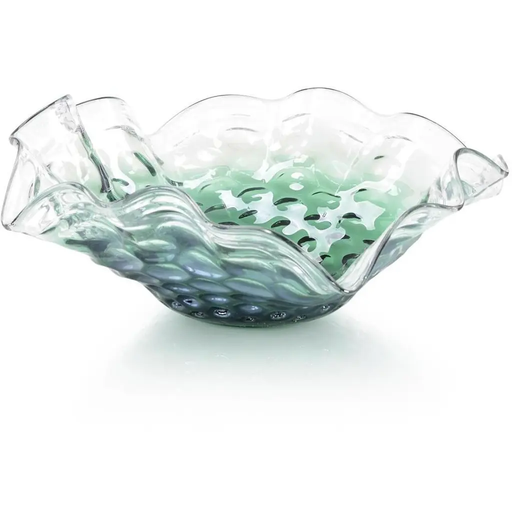 Reliquia by Ehécatl MorenoHandmadeDimensions: D 45 x W 45 x H 12 cm.Materials: Glass, steel.A glass platter modeled from thermoforming, it is a masterpiece of transparency and luminosity. Its prismatic design uniquely captures light, creating reflections and sparkles that flicker on the surface. The molding technique not only adds a three-dimensional dimension to the piece but also allows subtle color changes as light interacts with the folds of the glass and the curves of the steel.Their fragility bestows upon them an even deeper beauty. Every small fissure tells a story of love, challenges overcome, and shared moments. In these imperfections lies the authenticity of the human experience, reflected in objects that have been cherished and cared for throughout the ages.All our lamps can be wired according to each country. If sold to the USA it will be wired for the USA for instance.We harbor a firm conviction that objects not only shape our present but also mold our future. Through our work, we seek to create pieces that act as mediums for participating in politics and presenting fantastical and reconciliatory realities amidst the adverse uncertainty of our time.Our designs, born from an intersection between the beautiful and the grotesque, explore the contrast and tension between the familiar and the novel, the natural and the artificial. We embrace a haunting beauty that challenges and captivates, inviting viewers to confront their own perceptions and emotions. Inspired by the cultural and scenic richness of our environment, we believe that every object has a story to tell and a future to influence.As creative directors, our mission is to offer pieces that not only beautify spaces but also provoke deep and emotional reflection in those who contemplate them. Our work is a tribute to memory and a bridge to the future, uniting the nostalgic with the innovative in every creation, and celebrating a beauty that unsettles as it enchants.