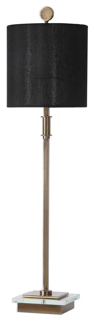 Luxurious, portable, & impactful, a beautiful table lamp keeps your space illuminated in style. The Rendezvous lamp is a simple shaped accent lamp made of iron in a two-toned gold/black finish. Paired with a matching, black finish shade, this lamp is an excellent fit in any modern space for an elegant, functional touch.