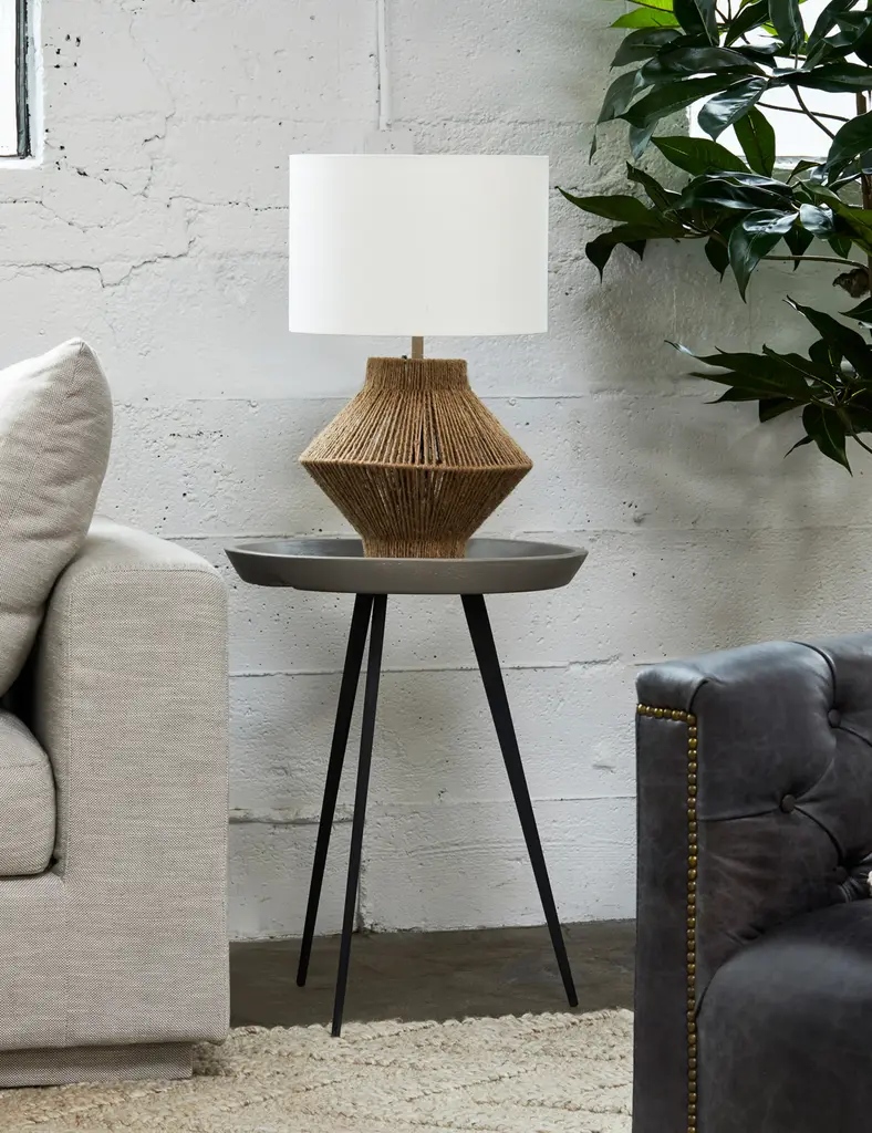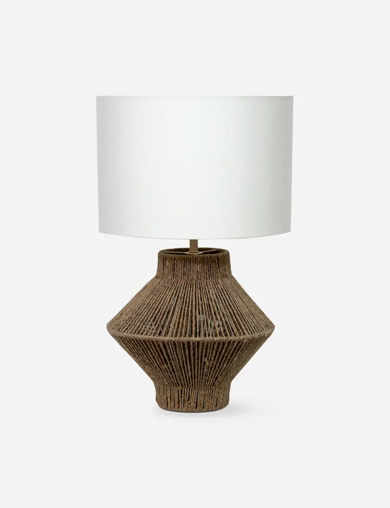 Layer in task lighting while adding textural impact to a table or shelf with the Renita lamp. This table lamp's handwoven jute base offers a rich organic tone while the hand-loomed shade filters light for effortless ambiance with a natural touch.