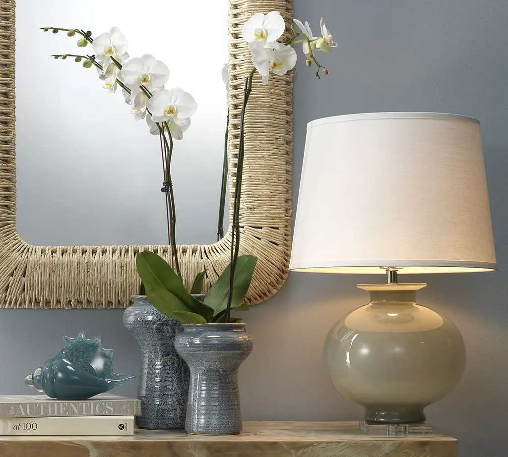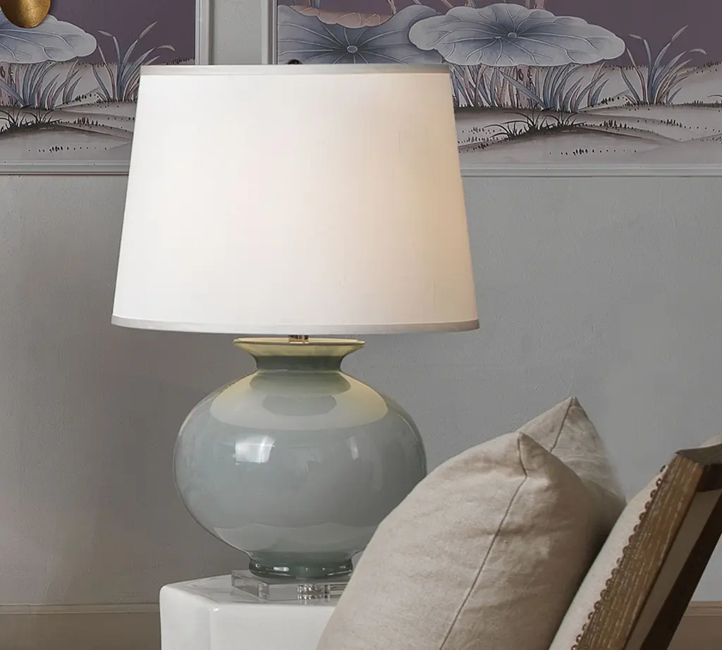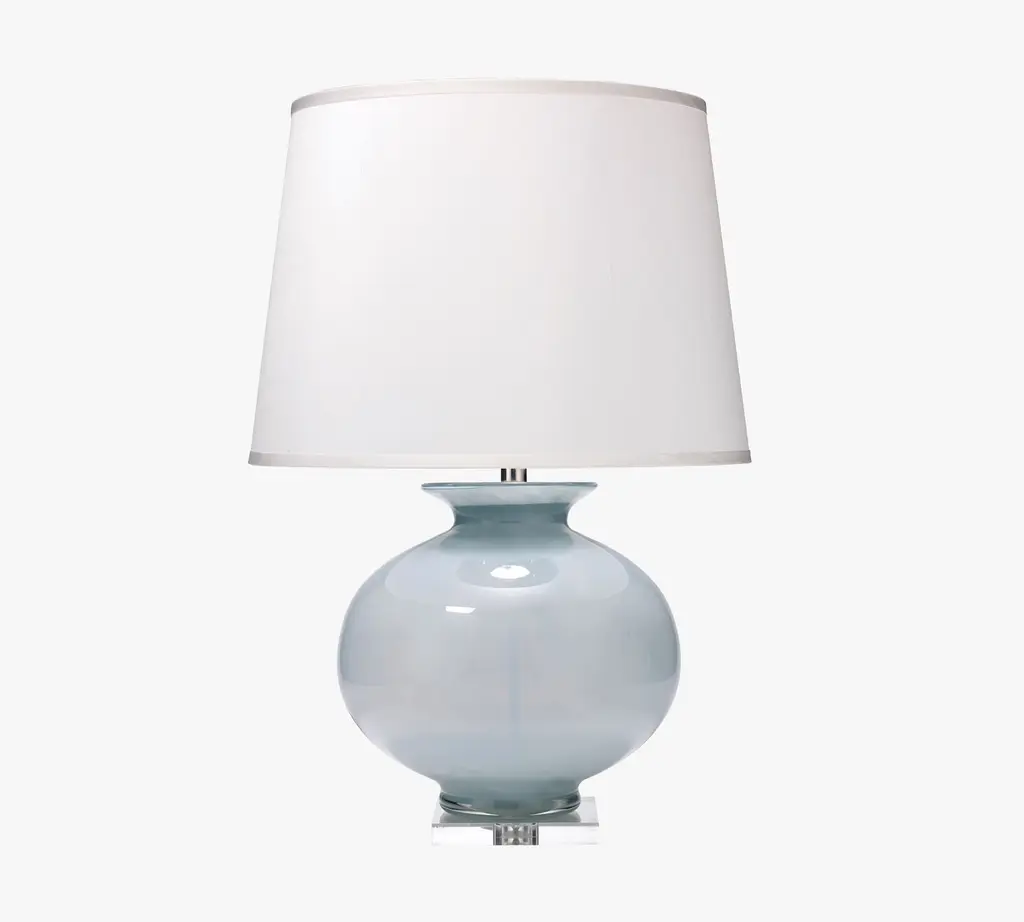 Simple yet elegant, this table lamp brings versatile style to your interiors. Reservoir is expertly crafted of glass in cornflower blue, its shapely curves adding a soothing organic sensibility. Crowned with a white linen shade for a timeless touch, the lamp complements a console, nightstand or side table in classic or contemporary settings alike.