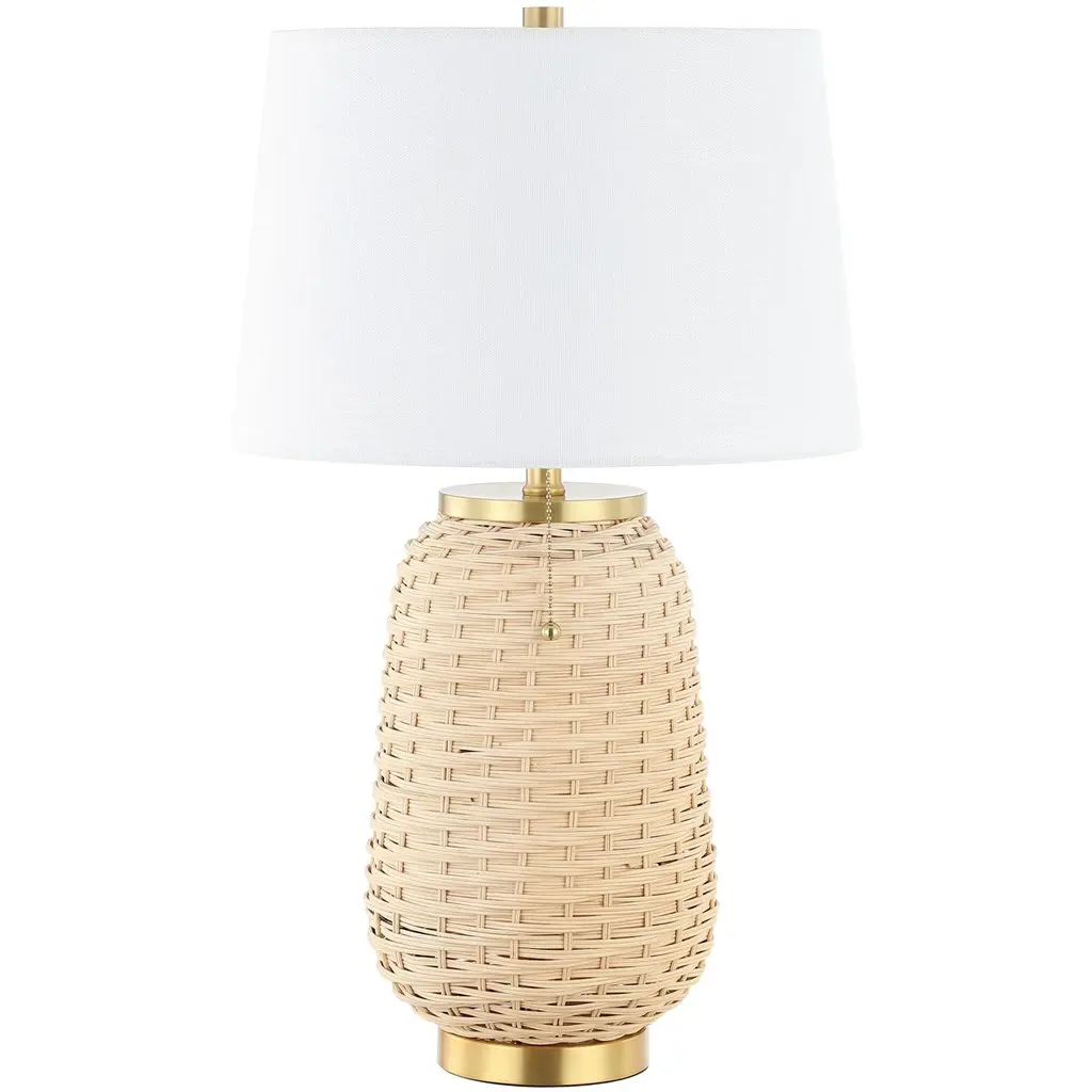 The Resort Bedside Table Lamp redefines style with its distinctive design featuring a bamboo-wrapped base, adding a unique texture and detail to its silhouette. This lamp is more than just a source of light; it's a statement piece that effortlessly infuses a touch of tropical sophistication into your space. Embrace the Resort Bedside Table Lamp, a perfect blend of style and natural charm for your bedside retreat.