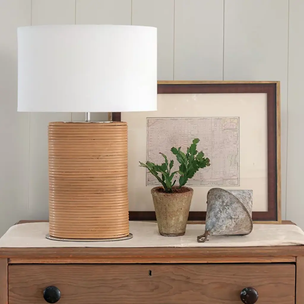 The Resort Bedside Table Lamp from Regina Andrew is a stylish and distinctive addition to any room. This lamp features a bamboo-wrapped base, giving it a unique texture and adding intricate detail to its sleek silhouette. More than just a light source, it serves as a statement piece, effortlessly bringing a touch of tropical sophistication to your space. This lamp blends modern style and natural charm, making it an ideal choice for enhancing your bedside retreat.