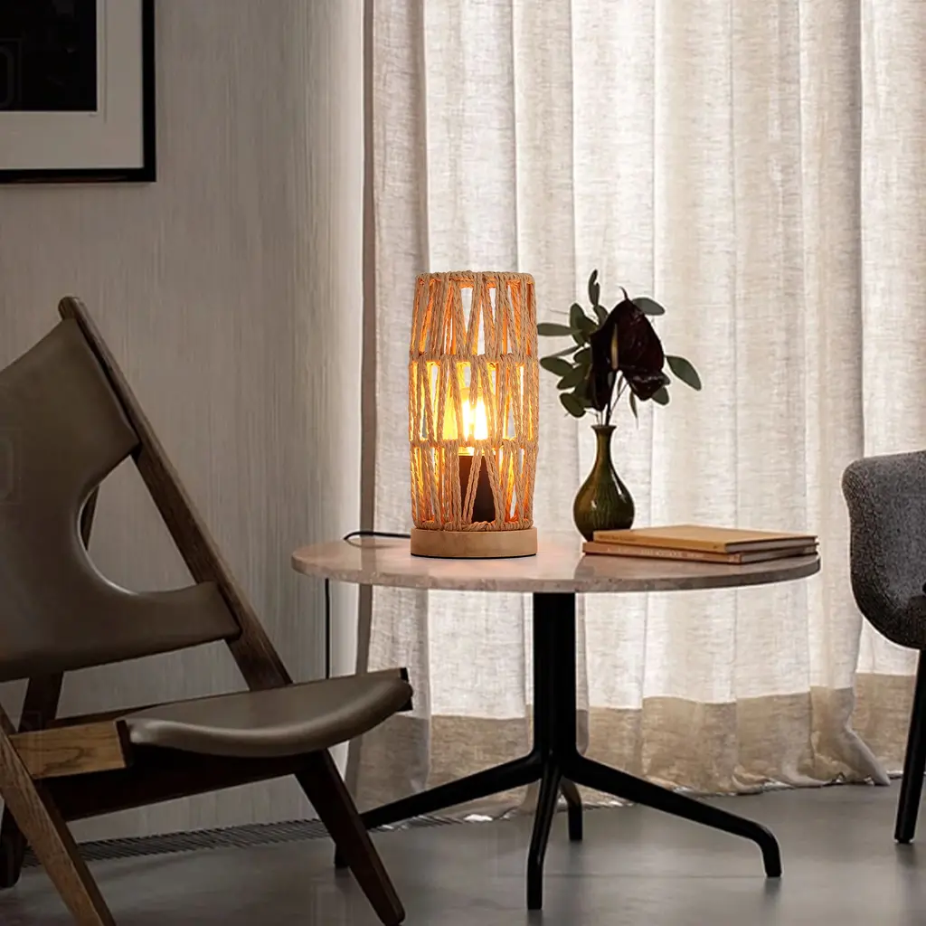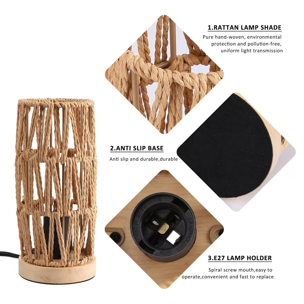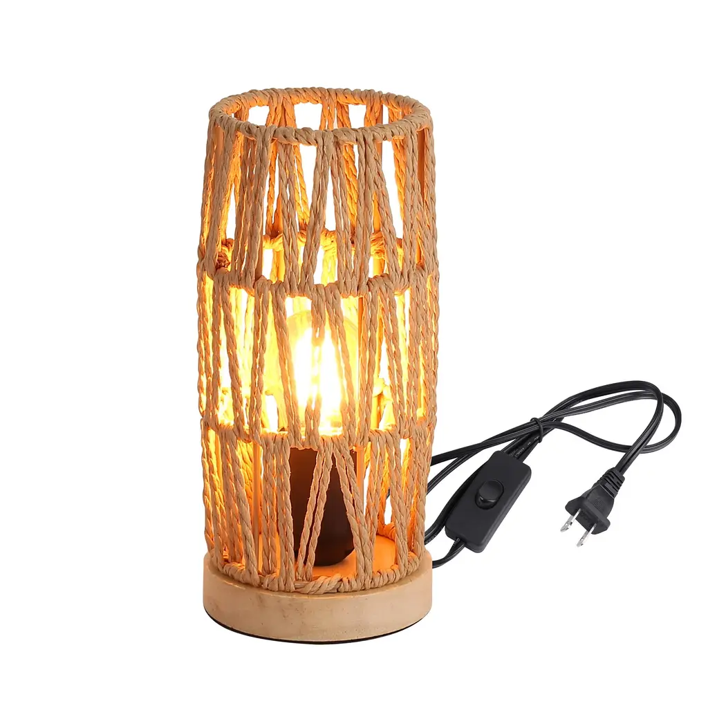Retro Industrial Minimalism cage table lamp is made of high-grade hardwood, and its cage lampshade is made of hand woven environmental rattan .This durable and modern simple desk lamp adds a touch of elegance to your home which goes perfectly with retro, industrial or vintage styles. It is an ideal decoration for guest rooms, living rooms, bedrooms, daycare and college dormitories. Bulb not include.【Handmade Rattan Table Light 】Product size : 8.66 "H x 3.94" W , 3.94 "diameter wooden base, 59" long wire. This table lamp features a handmade bamboo cane lamp shade and a plug-in table lamp with a solid wood base. This is the perfect combination of Bohemian, farmhouse, natural, minimalist style.【High-Quality Wooden Base】The round base of this mid century antique lamp is made of high-quality wood, the cage lampshade is made of sturdy metal material to prevent bending and discoloration, and the Rotary switch on the base is convenient to use. The elegant and stylish appearance enhances the beauty of your home.【Minimalist Retro Style】 This is a very cute minimalist retro style small table lamp, The antique, graceful, cage shape table light will fill any nook with a welcoming glow and shed a little more light in your lovely home.【Vintage Style Lighting】It casts shadows through holes and provides a comfortable soft glow. A circular rattan lamp shade suspended above a natural solid wood base elevates your home aesthetic with this rattan lamp. This wooden lamp will be a gorgeous addition to your guests' office and home decor.【Perfect for home decor application】This retro mini desk lamp take up a small space and has a unique decorative effect. It can be used on bedside tables in bedrooms, end table or coffee tables in living rooms of various sizes. It is a good choice for nightlight or reading lamps.Very suitable for your bedroom, living room, kitchen, basement, studio, study,dining room, bathroom, entrance, corridor, kids’ room,outdoor, bedside etc.