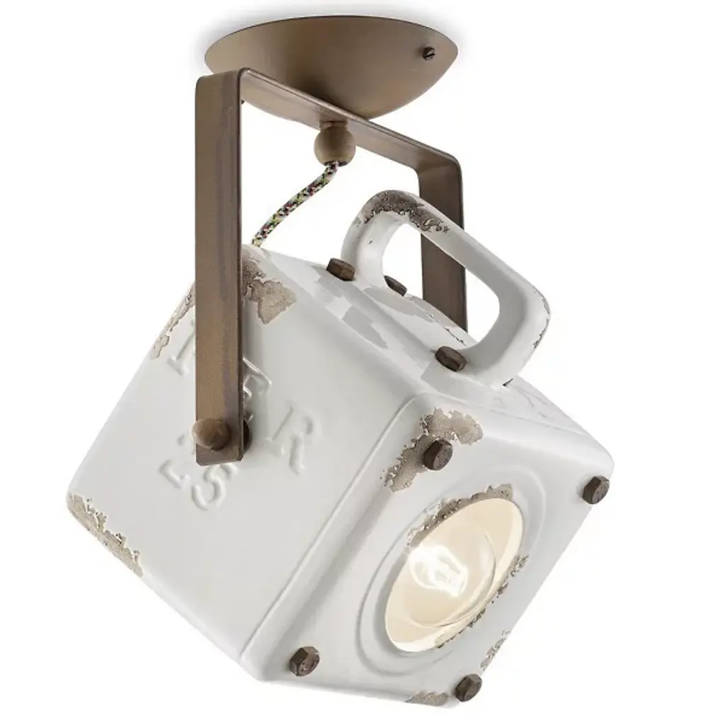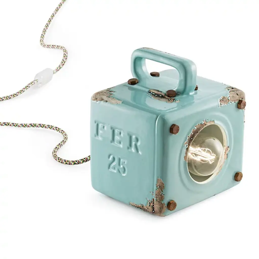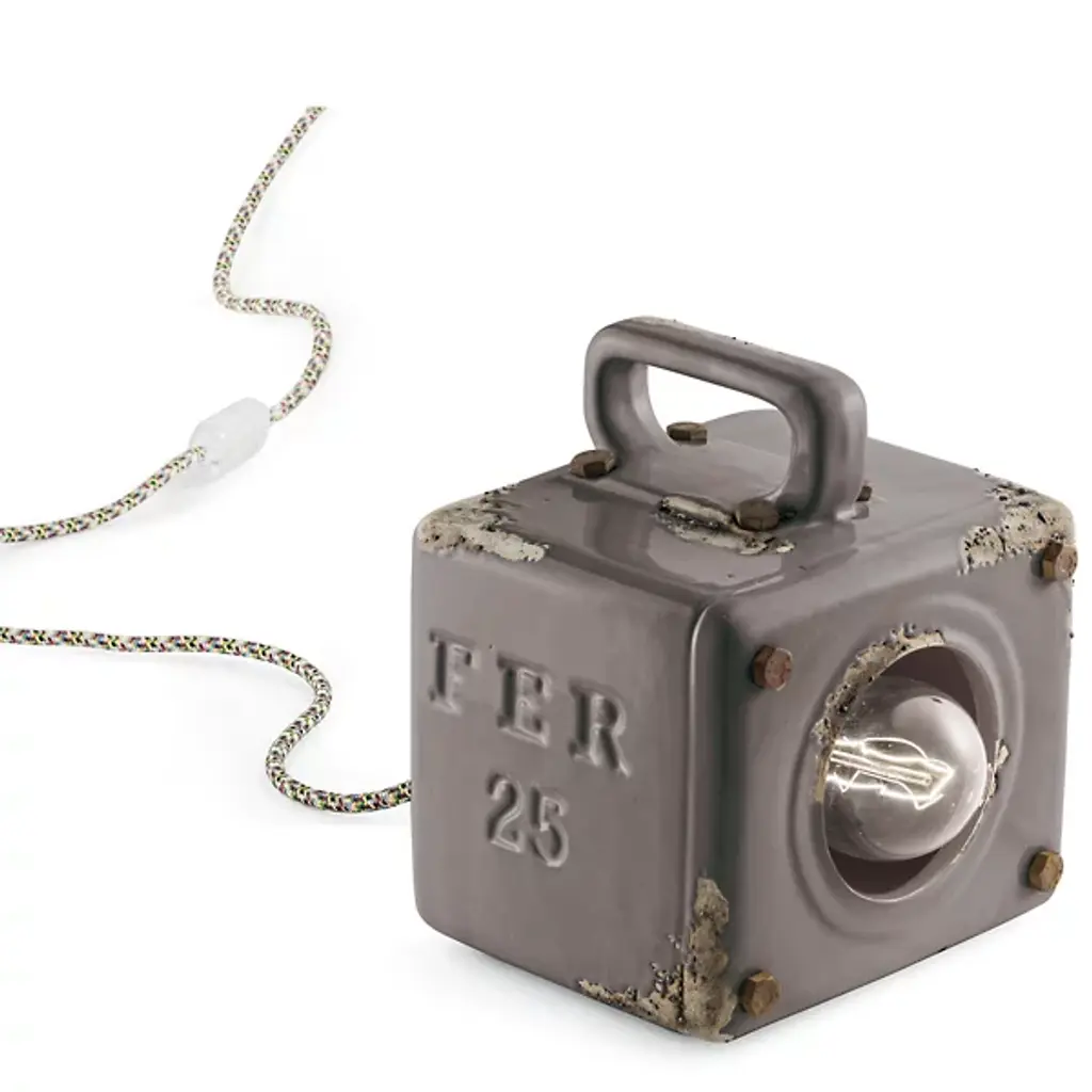 Give your living space an industrial element with the Retro Industrial Table Lamp by Ferroluce. A brilliant LED is housed within a frame of fine ceramic. Your table lamp takes on a cubic shape which is complemented by a contoured handle for your convenience. This handcrafted, portable lamp is defined by its intentionally distressed look. Easily stack this table lamp on top of other Retro Industrial Table Lamps for added illumination.