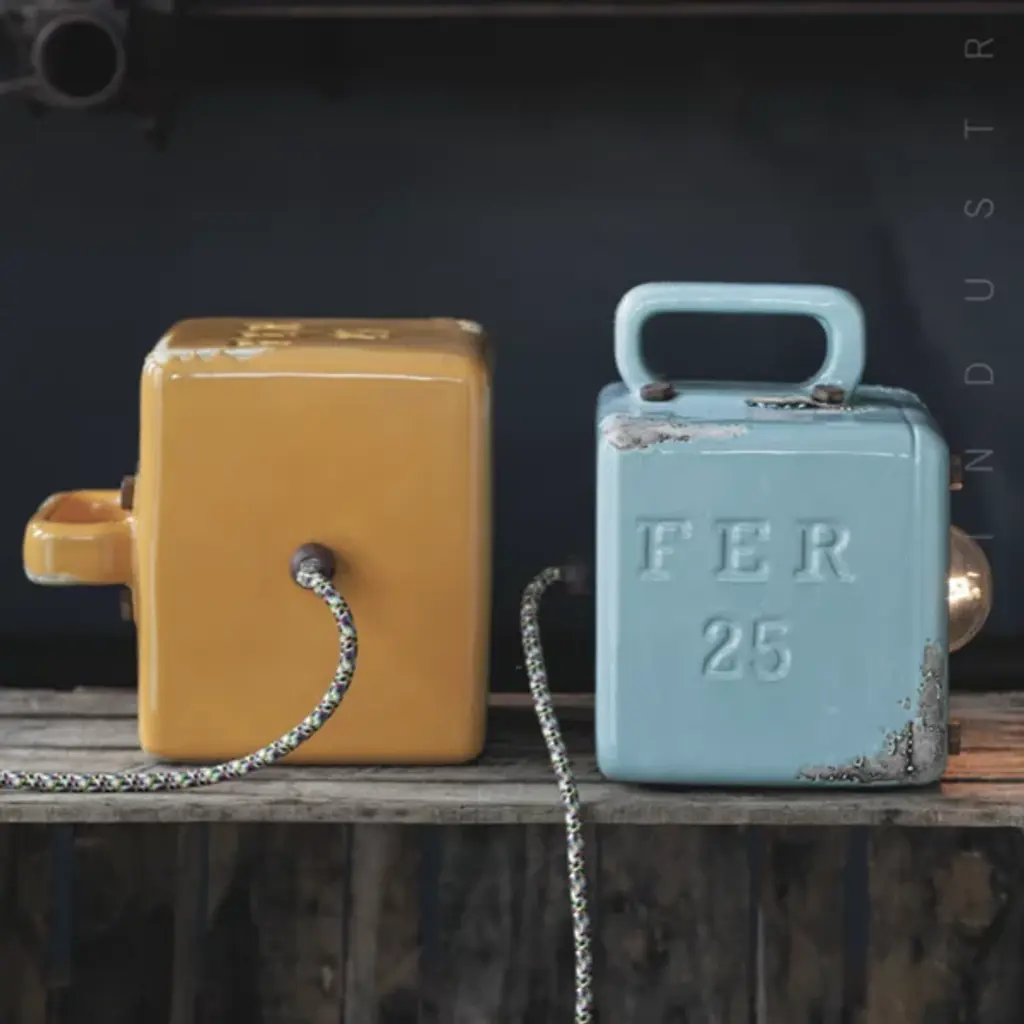 Give your living space an industrial element with the Retro Industrial Table Lamp by Ferroluce. A brilliant LED is housed within a frame of fine ceramic. Your table lamp takes on a cubic shape which is complemented by a contoured handle for your convenience. This handcrafted, portable lamp is defined by its intentionally distressed look. Easily stack this table lamp on top of other Retro Industrial Table Lamps for added illumination.