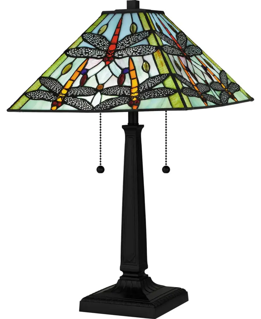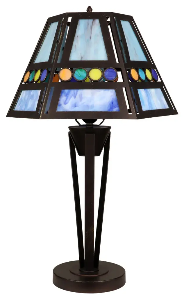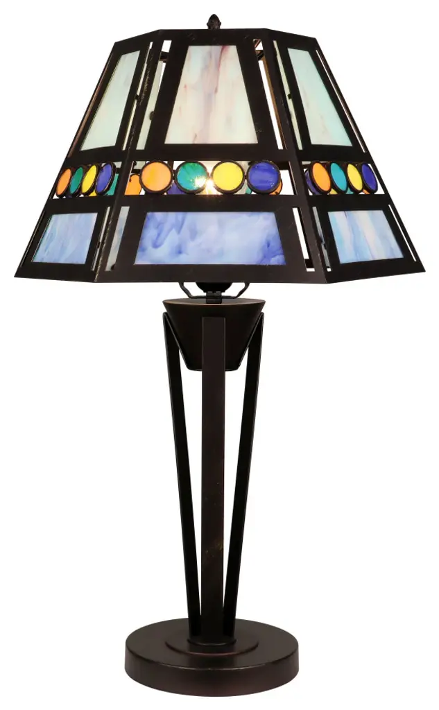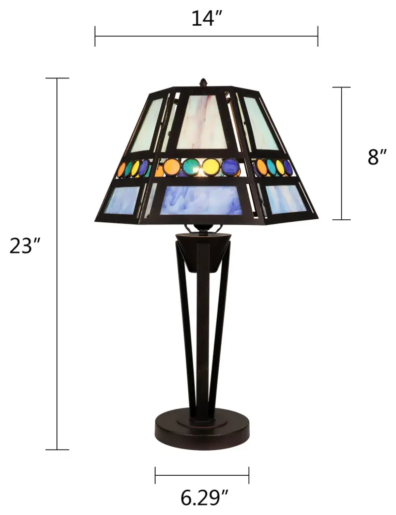 Retro Stained Glass 1-Light Table Lamp 14" Shade