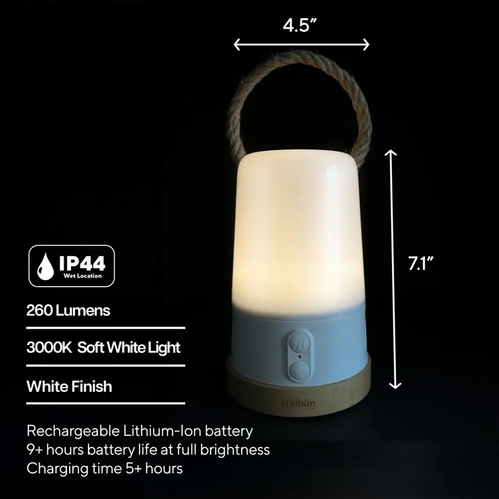 Introducing the Revel Cordless LED Outdoor Table Lamp—where timeless design meets modern performance. This cordless, rechargeable lantern delivers warm, reliable light, ensuring your outdoor moments are beautifully illuminated. Designed to move with you, it features a fully dimmable LED light, so you can brighten your path or set the mood for an evening under the stars. Choose from distinct modes including pulsing or a full range of dimmable static light. Its lightweight yet durable frame makes it the perfect companion for campsites, backyard gatherings, and power outages alike. The stylish hemp rope handle allows for effortless carrying and hanging���whether from a tent, tree, or porch hook. We believe that better light means better life. With this lantern, we bring effortless, professional-grade illumination to your outdoor adventures—because the best moments don’t end when the sun goes down.
