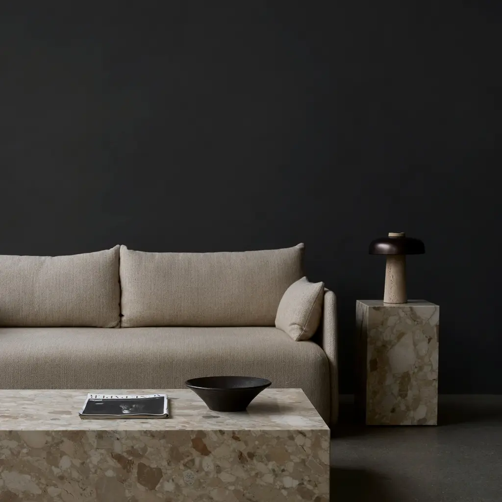 Playing with the concept of balance, Copenhagen designer Aleksandar Lazic finds a compelling synergy in his LED table lamp with its raw travertine stone base and smooth bronzed domed shade. Fitted with a dimmer switch easily located on the top, Reverse seems lit from within and casts warm illumination on a bedside table or a sideboard.
