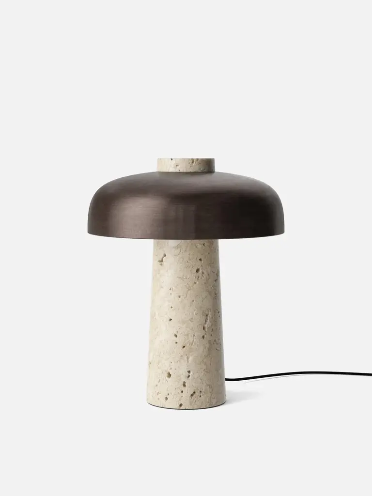 Audo presents Reverse Lamp, a new lighting solution that underpins the ever-present beauty of natural materials. In his search for simple and clever solutions in any given space, Danish designer Aleksandar Lazic looked to Italian marble tables from the 1970s when creating the Reverse Lamp. Inspired by the play on structure created by geometric constraints, the conical travertine base and curved, bronzed aluminum shade define the lamp’s perfectly balanced expression. The light diffuses evenly across the unworked stone, left raw to allow the light to highlight its natural imperfections, revealing shadows and an intriguing color play that seems to stem from the base itself. At precisely the point at which the shade and base meet sits a dimmer switch for adjusting the light intensity. Fitted with a dim-to-warm LED light source, the Reverse Lamp casts warm light on a bedside table or subdued light on a cabinet surface, making it an elegant and characterful solution to a multitude of lighting needs.