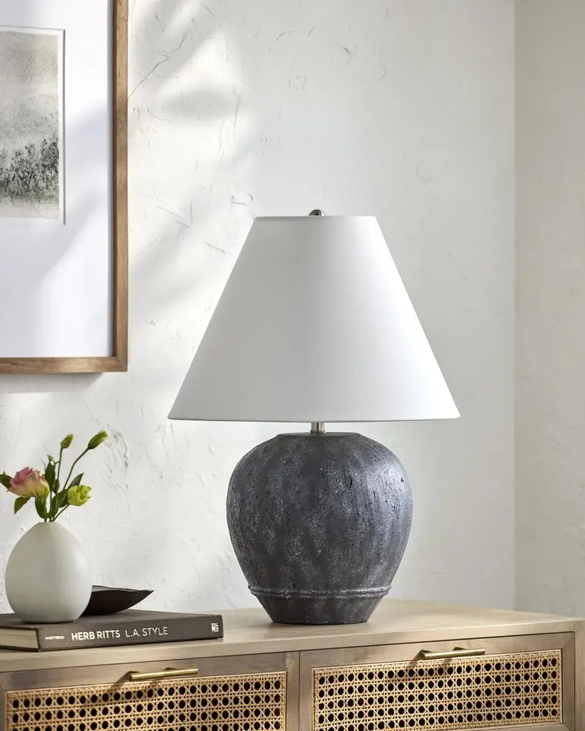 Transform your space with the captivating allure of the Revina accent table lamp, a perfect blend of Art Deco elegance and modern sophistication. This eye-catching piece stands 22 inches tall and features a ceramic body that exudes timeless charm. It is topped with a chic linen shade that gently diffuses light, complemented by an iron finial for an added touch of refinement. Both stylish and functional, this lamp is easy to maintain—simply wipe clean with a dry cloth to keep it looking pristine. Elevate your décor effortlessly with the Revina accent table lamp, where contemporary design meets classic beauty.
