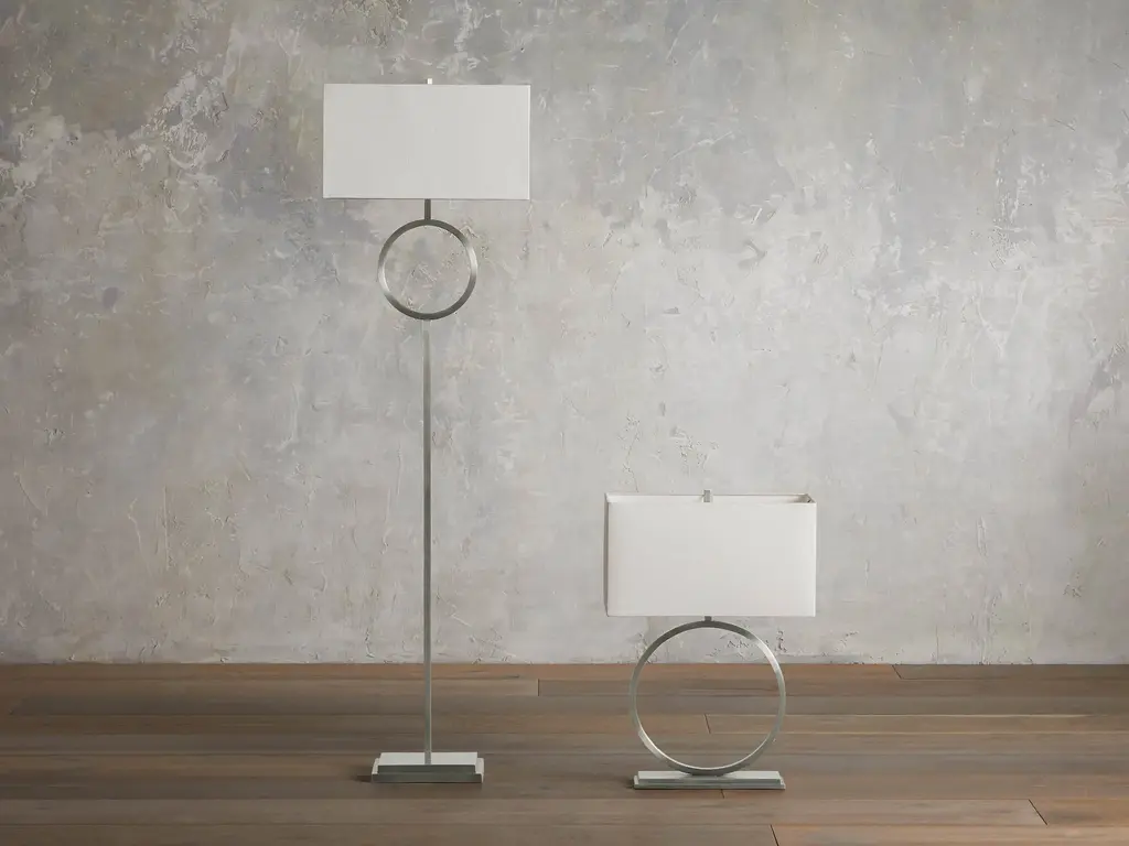 Featuring a contemporary, minimalist design, our Rhys Floor Lamp makes a statement. Rhys features a polished finish complemented by a white linen shade.