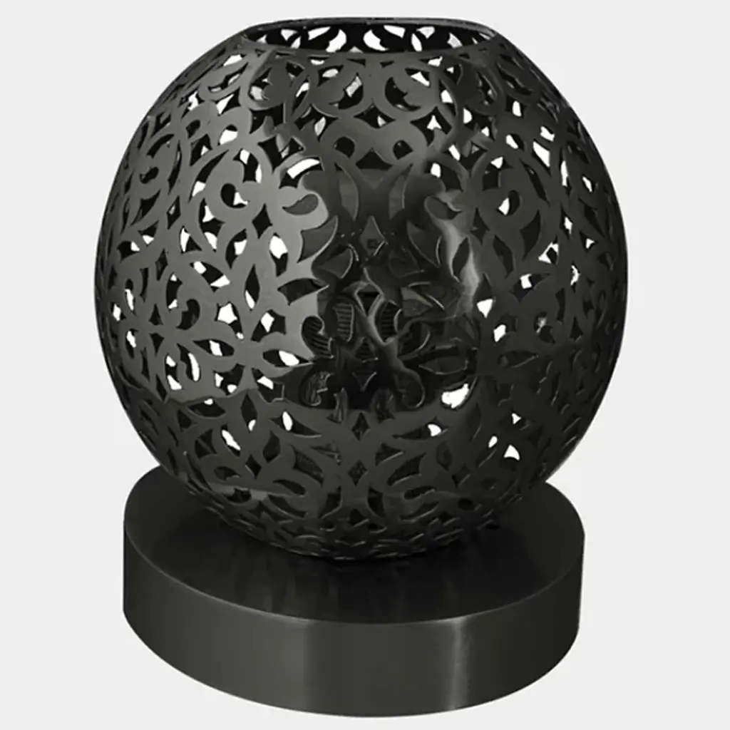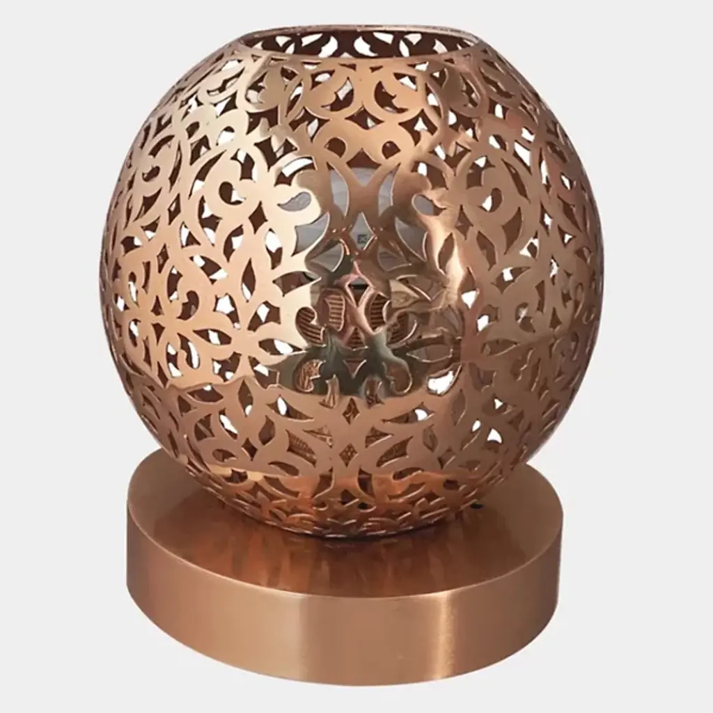 Presented by Dounia Home, the Riad Table Lamp is a luxury light furnishing that boasts eco-friendly appeal and artisan quality craftsmanship. LED illumination offers a long lifespan and low energy consumption. The globe of the shade is decoratively perforated for a bohemian and decadent feel. It was handmade in Morocco by ethically compensated Artisans, and each exquisite piece at Dounia Home is made in a small batch for supreme quality.