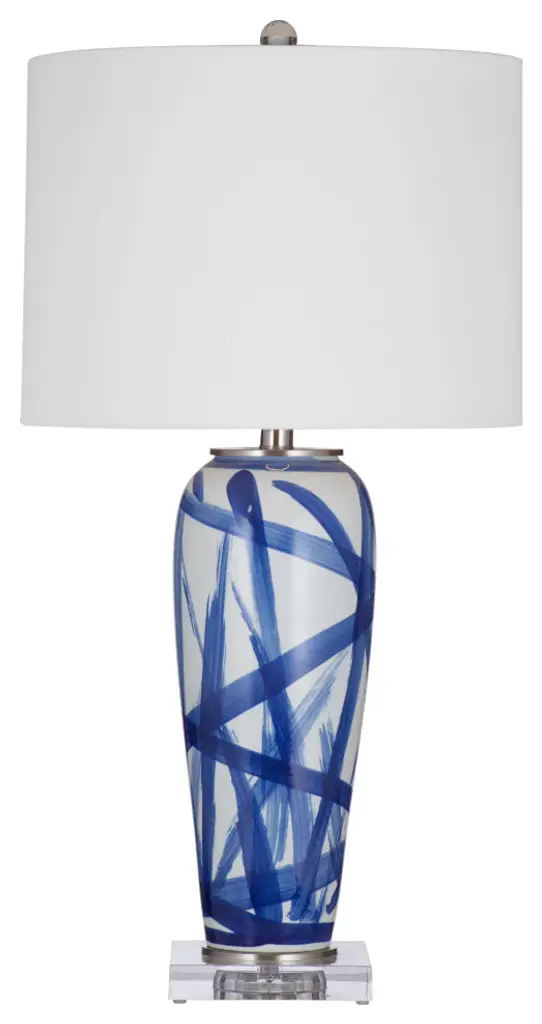 The Rianna Table Lamp is crafted of ceramic with a white drum shade.Features:This blue and white table lamp features a modern style.The drum shaped lamp shade features a white finish.Features a 3 way switch.Bulb type a required, not includedEasy assembly - just attach harp, finial and shade.For over a century, Bassett Mirror has been synonymous with style and quality, transforming homes with its sophisticated and timeless designs. With a wide-ranging collection of furniture, lighting, mirrors, and art, Bassett Mirror seamlessly blends modern style with classic appeal. From rustic modern to luxe glam, each piece is thoughtfully crafted to inspire and elevate any space. Committed to exceptional value and customer care, Bassett Mirror makes it easy for homeowners to create beautiful, personalized interiors with confidence.