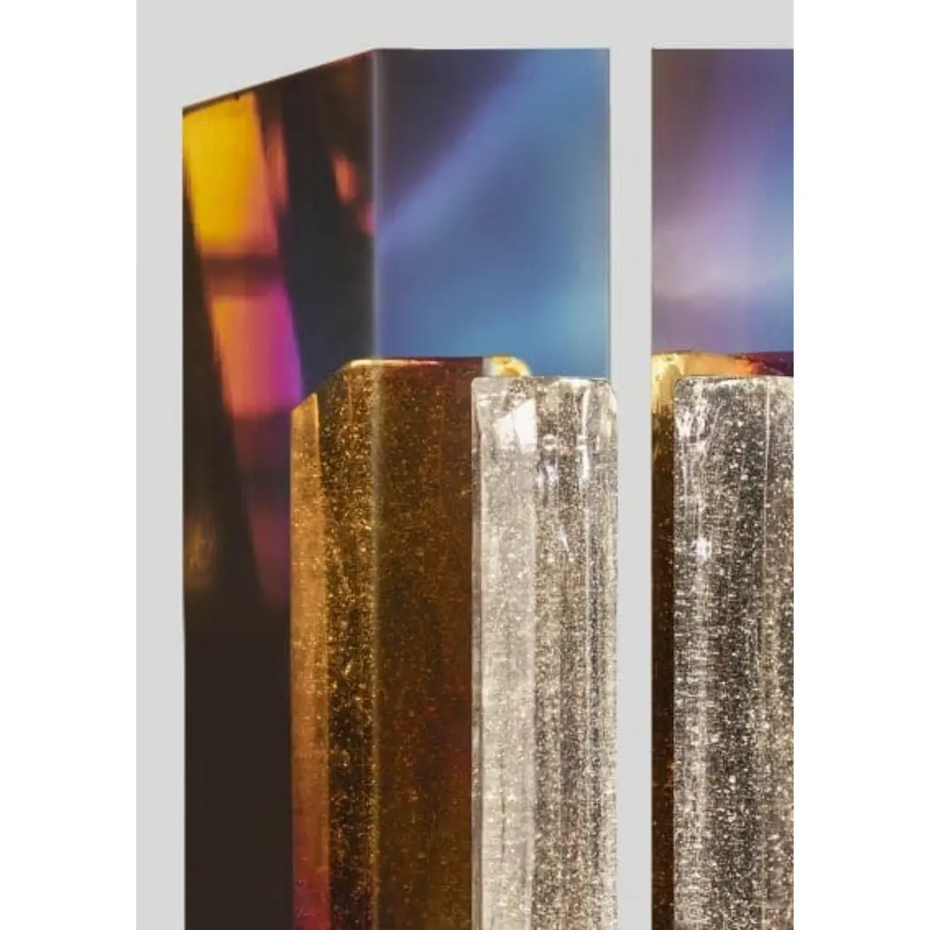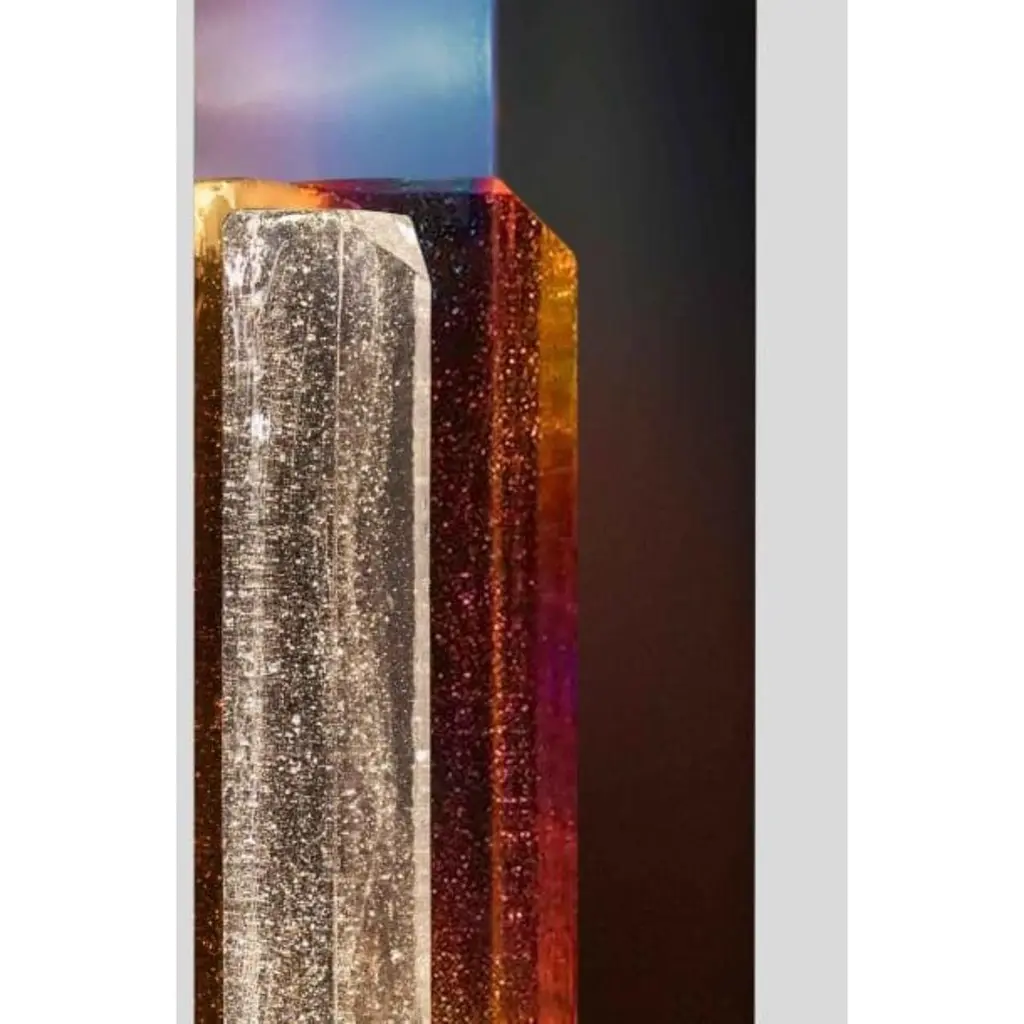 Rigel Grande Table Lamp by SB26Limited EditionDimensions: L 42 x W 12 x H 85 cmMaterials: Steel, Glass. The Grande Rigel, in the limited edition, is an enlarged version of the Rigel lamp. Still a table lamp, it commands a significant scenic presence.Set on a base of hot-blued steel, two glass paste ingots capture light from LED spots embedded within. The light twinkles through the bubbles trapped in the glass. Two mirror-polished stainless steel reflectors positioned at the back bounce light effects in warm hues. These two rear pieces, through a hot treatment, reveal moiré tones between golds and violets.SB26 is the brand created in 2018 by the designer Samuel Accoceberry and the blacksmith Bruce Cecere. This birth originates in the desire of Bruce Cecere to design and present an exceptional object during a program of co-creation Craftsman / Designer.For this, he chooses Samuel Accoceberry, renowned designer not only for his collaborations with major brands but also for his concern to promote the great know-how and their authors. Together, they explored the limits of metal work, such as goldsmiths, to create the line of luminaires Moon which one of the pieces was presented at the Milan Salon in 2018.To continue their collaboration and develop new projects, they create their joint signature SB26 (Samuel Accoceberry & Bruce Cecere Studio).All our lamps can be wired according to each country. If sold to the USA it will be wired for the USA for instance.