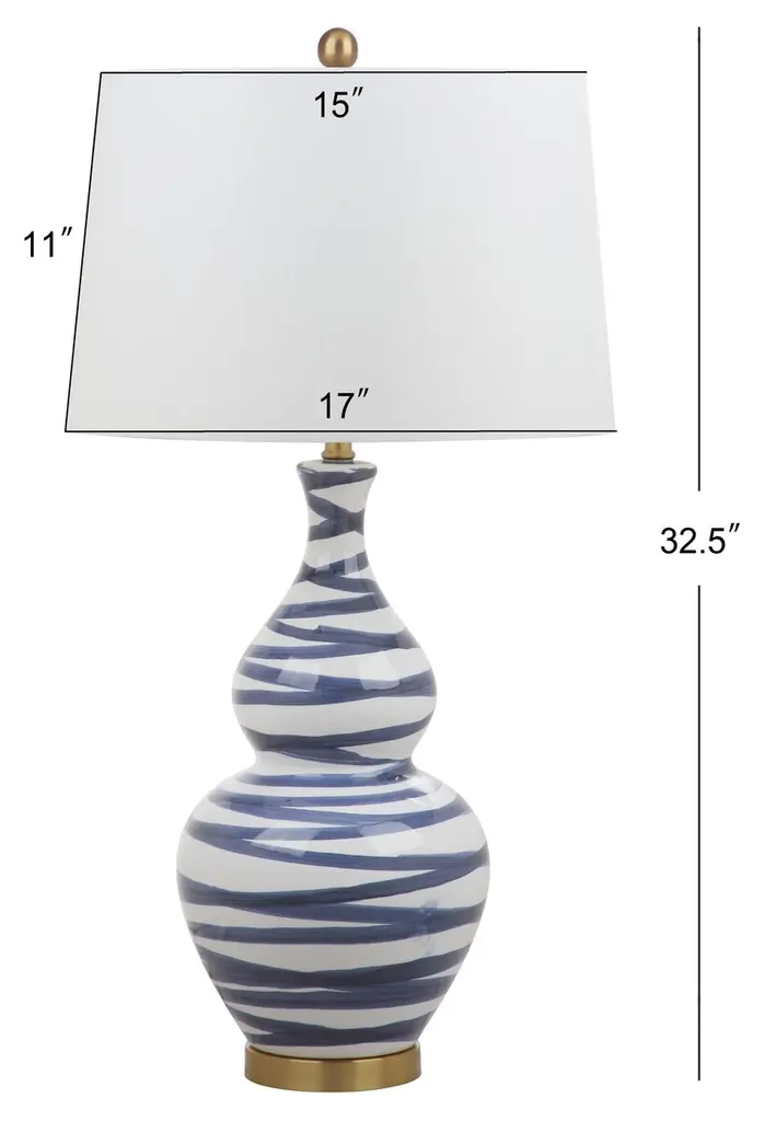 Swirling blue stripes give a fresh energy to this otherwise classic double-gourd lamp. The golden base and finial add to the elegance.