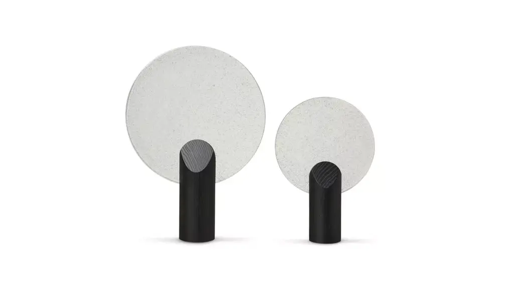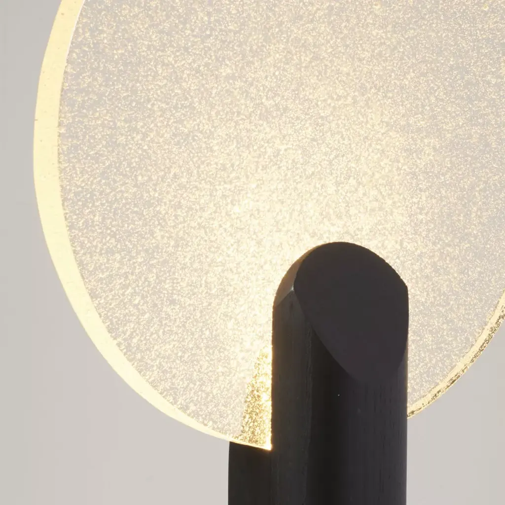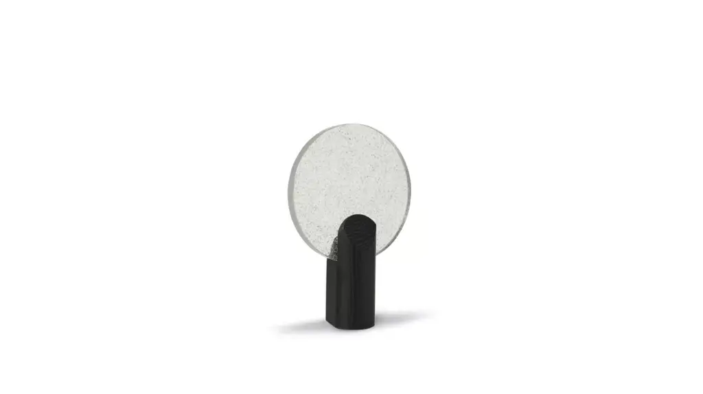 Jonathan Radetz designed the Rise lamp to showcase beauty in subtlety through its materials and the lighting effects of the bubbled cast glass. The diffuser is handcrafted from pure molded glass making it both an artistic object and a functional lamp. Whether illuminated by the light bulb or reflecting sunlight, the transparent disc creates beautiful reflections of light.