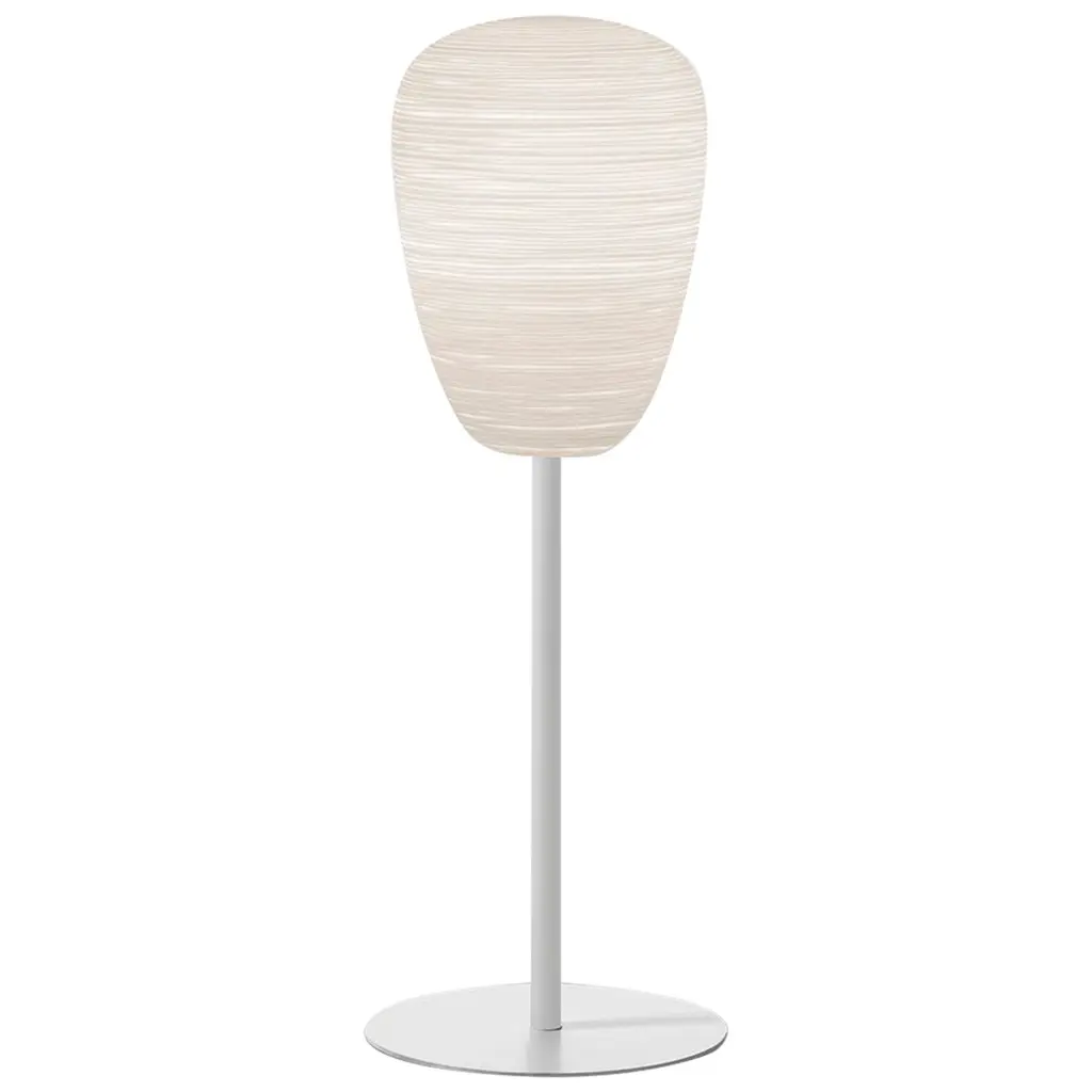 Rituals 3 is a table lamp made of blown engraved satin glass and varnished metal.LIGHT SOURCE220/240 V- LED retrofit, Halo 105WE27No Dimmable- LED retrofit, Halo 105WE27Dimmer includedIP 20Bulb not includedLanterns that rely on the allure of materials, balanced between east and west. The blown glass body is enhanced by slender incisions, like those of ground glass. The horizontal lines on the surface filter and modulate the intensity of the light, producing a refined effect.