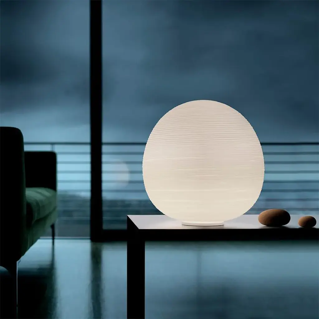 Rituals is a combination of east and west, memory and modernity, poetic inspiration and technological research. It is a family of distinct, complementary shapes that translate the luminous magic of oriental rice paper lanterns into the precious physical form of blown glass. The special glass working method, with irregular lines that mark the surface, was created by the industrialisation of the artisan process of grinding. The result is a delicate, fascinating decoration that produces a unique sensation of chiaroscuro and a soft and gentle light. The strength of this design concept has allowed them to develop new sizes and uses, which are not merely adaptations, but real explorations of the further possibilities of this project. Features
